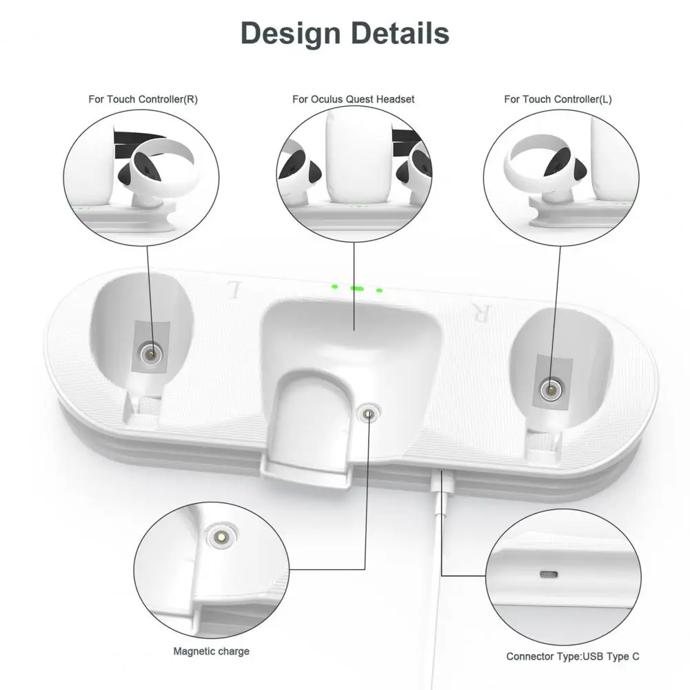 VR VR 컨트롤러 충전 도크 마그네틱 VR 헤드셋 컨트롤러 USB C 타입 고속 충전기 스테이션 스탠드 배터리