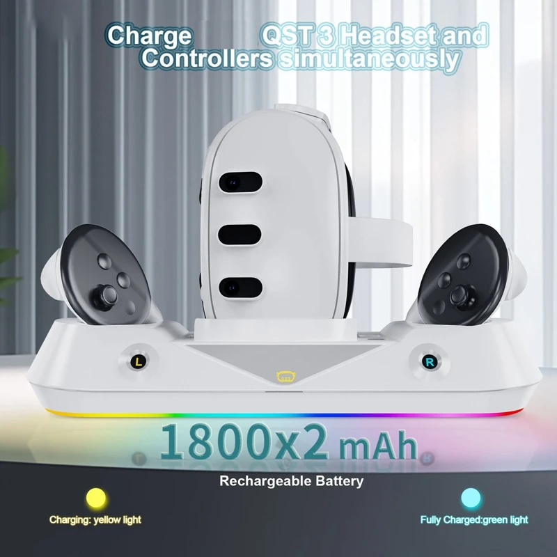 VR 메타 퀘스트 3 충전기용 RGB 충전 독 VR 헤드셋 및 컨트롤러 배터리
