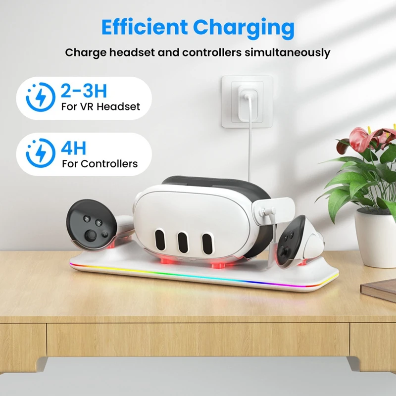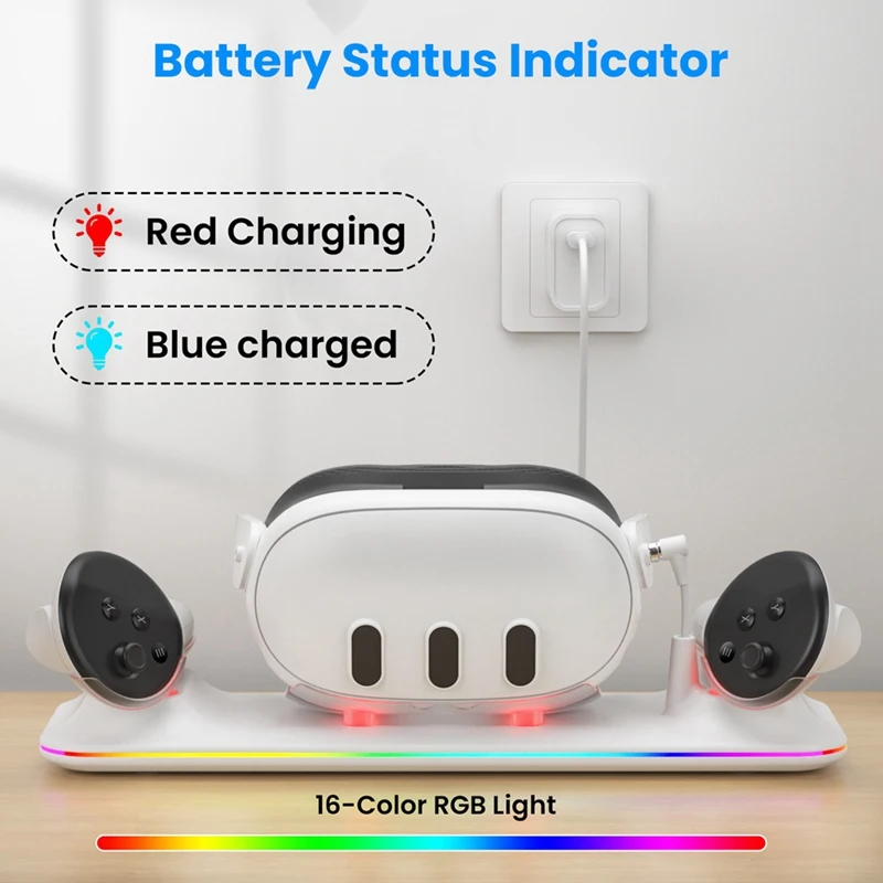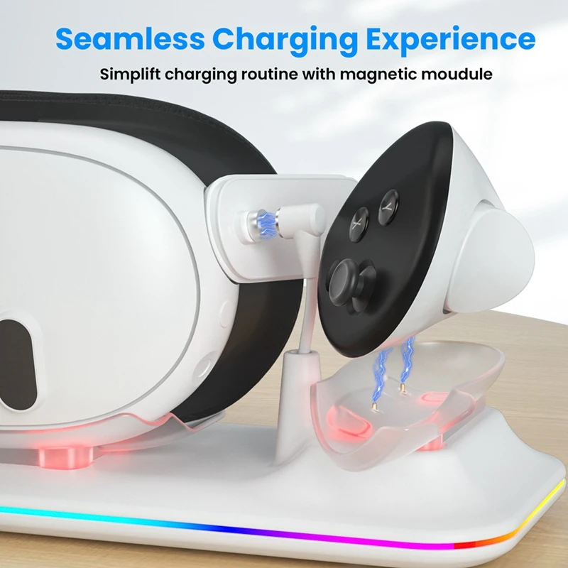 VR 무선 충전 도크 메타 퀘스트 3 메타 3 VR용 다기능 자기 흡입 RGB 라이트 무선 충전 어댑터
