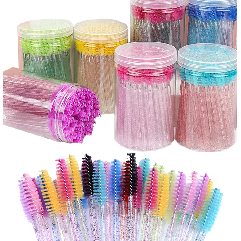 VR 여성용 일회용 다이아몬드 속눈썹 브러시 빗 크리스탈 마스카라 완드 어플리케이터 메이크업 브러시