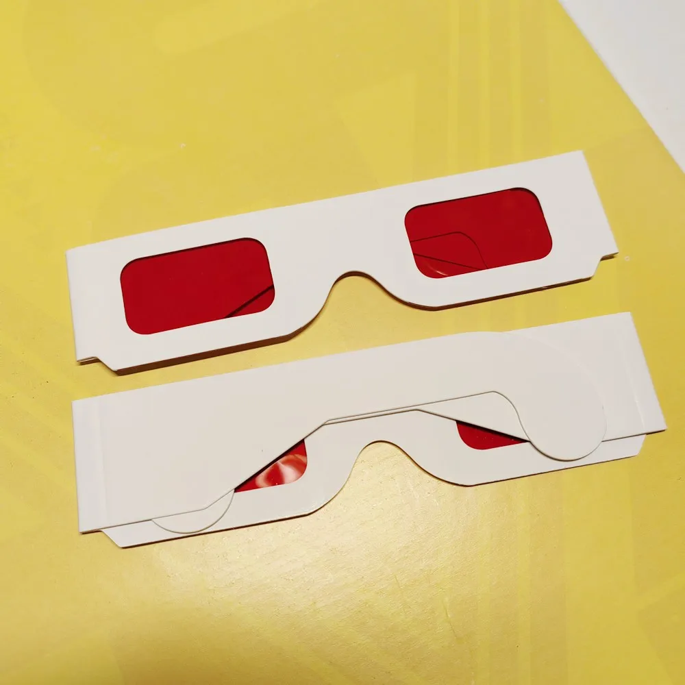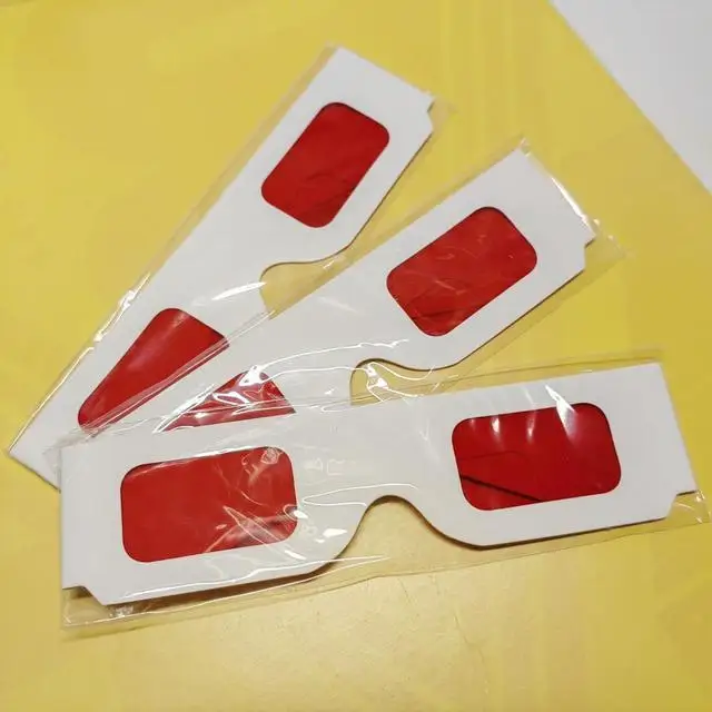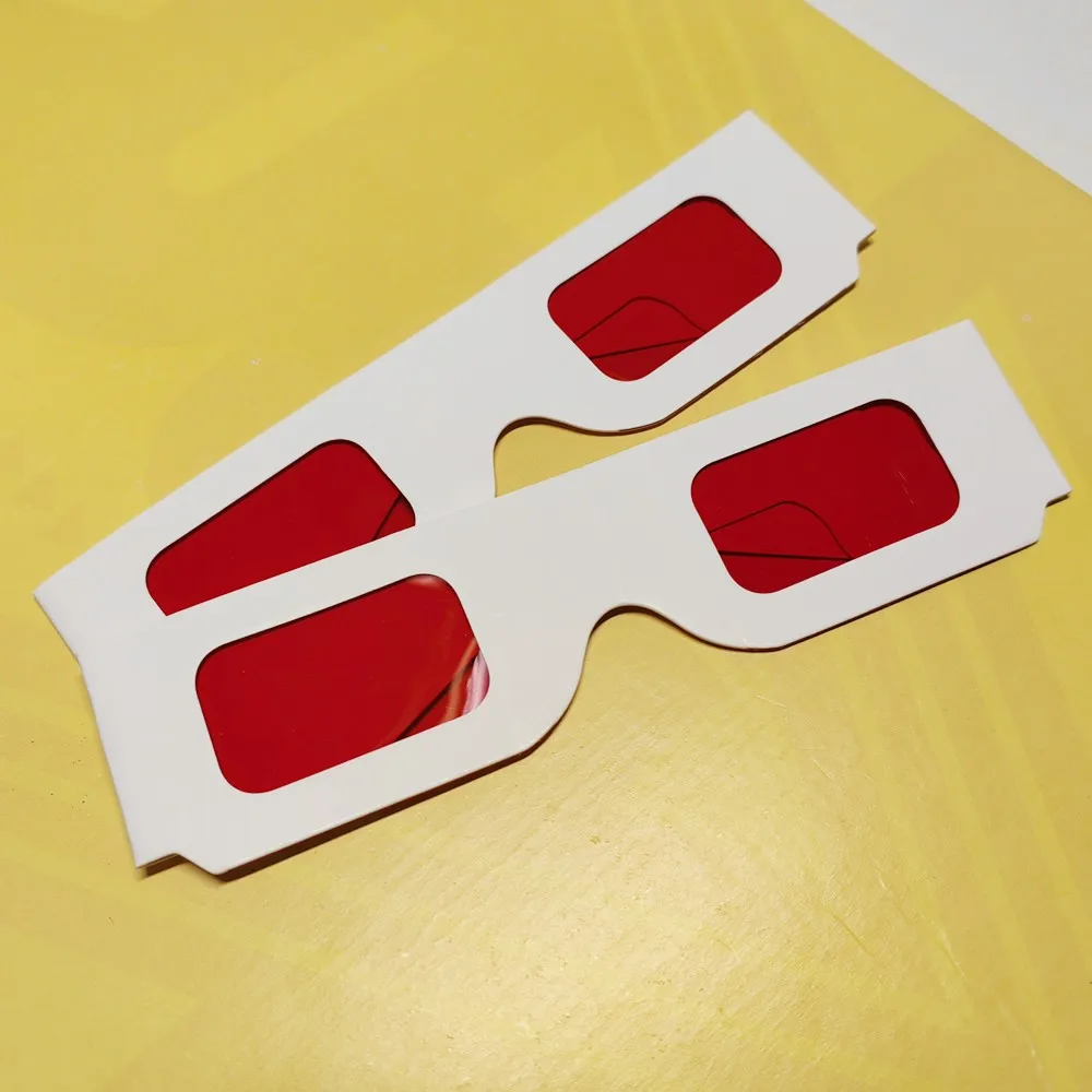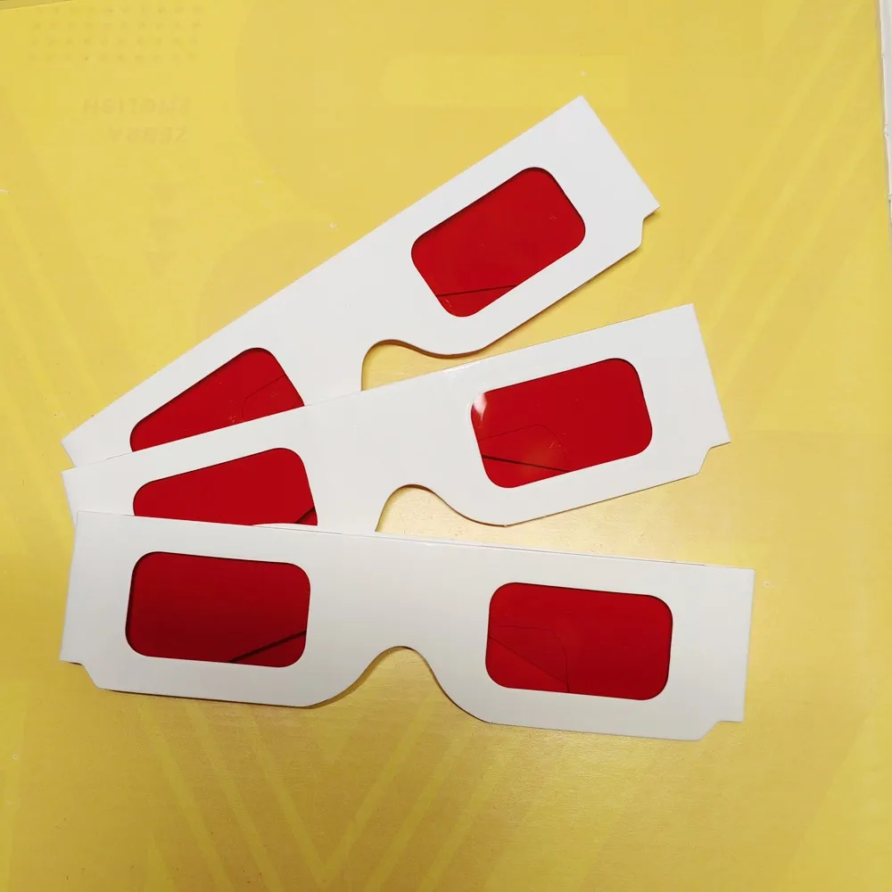VR 판촉용 재사용 가능 3D 안경 종이 프레임 레드 및 레드 3D 디코더 안경 100 개/로트