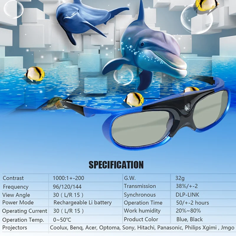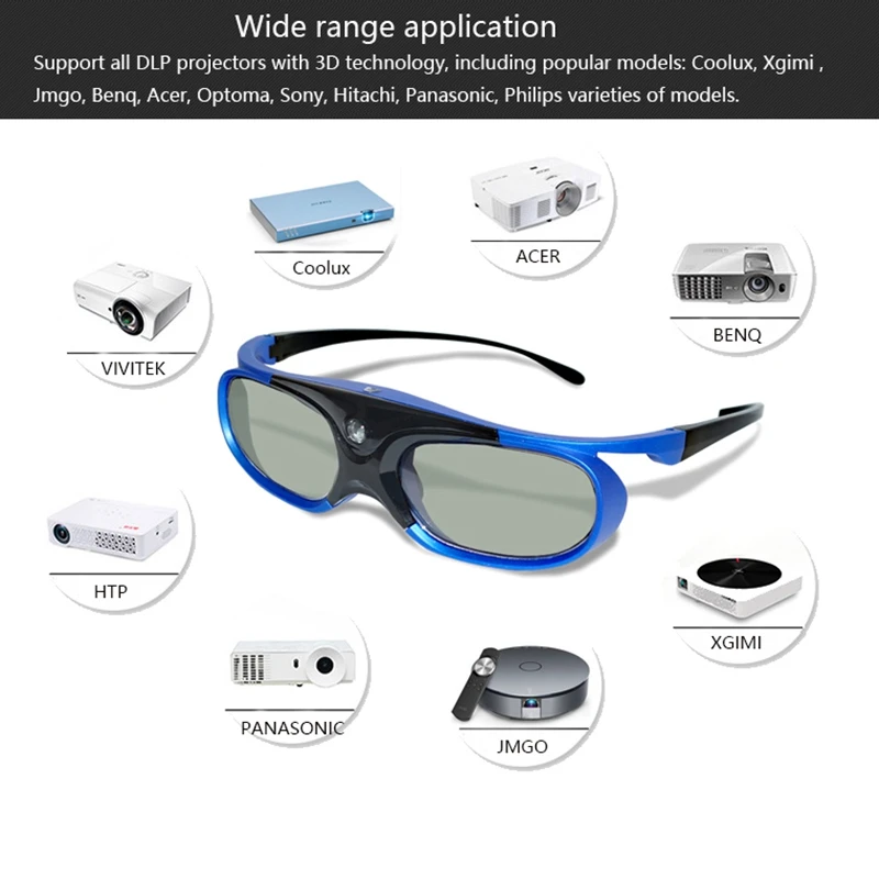 VR 충전식 DLP 링크 3D 안경 액티브 셔터 안경 Xgimi Z3 Z4 Z6 H1 H2 너트 G1 P2 BenQ Acer 및 DLP 링크