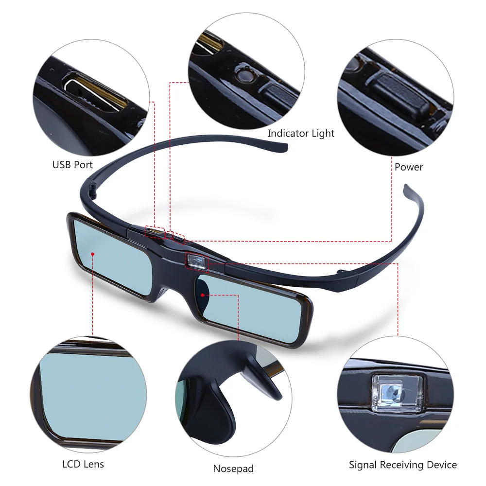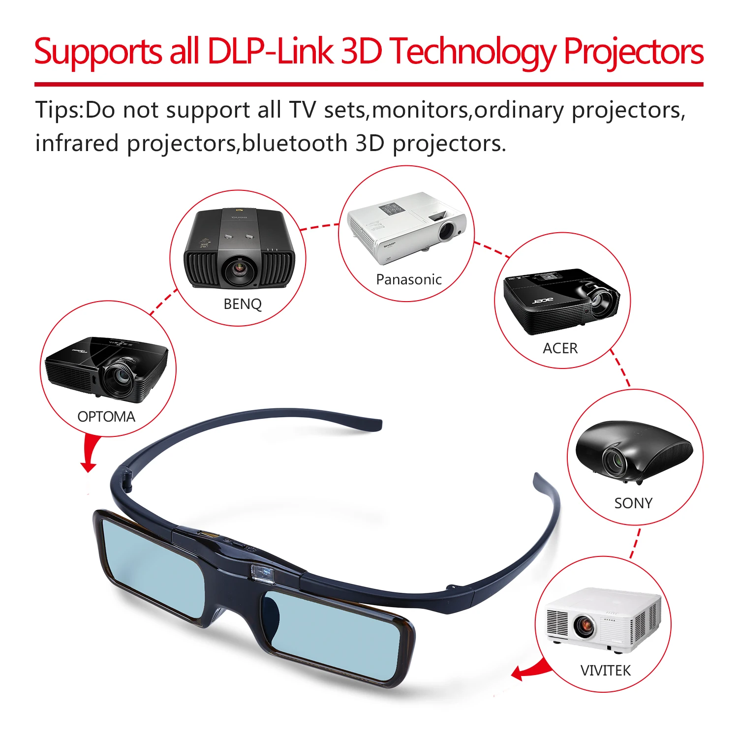 VR BOBLOV 3D DLP 링크 프로젝터용 충전식 LCD 액티브 셔터 안경 MX30 DLP 링크 96HZ 144HZ