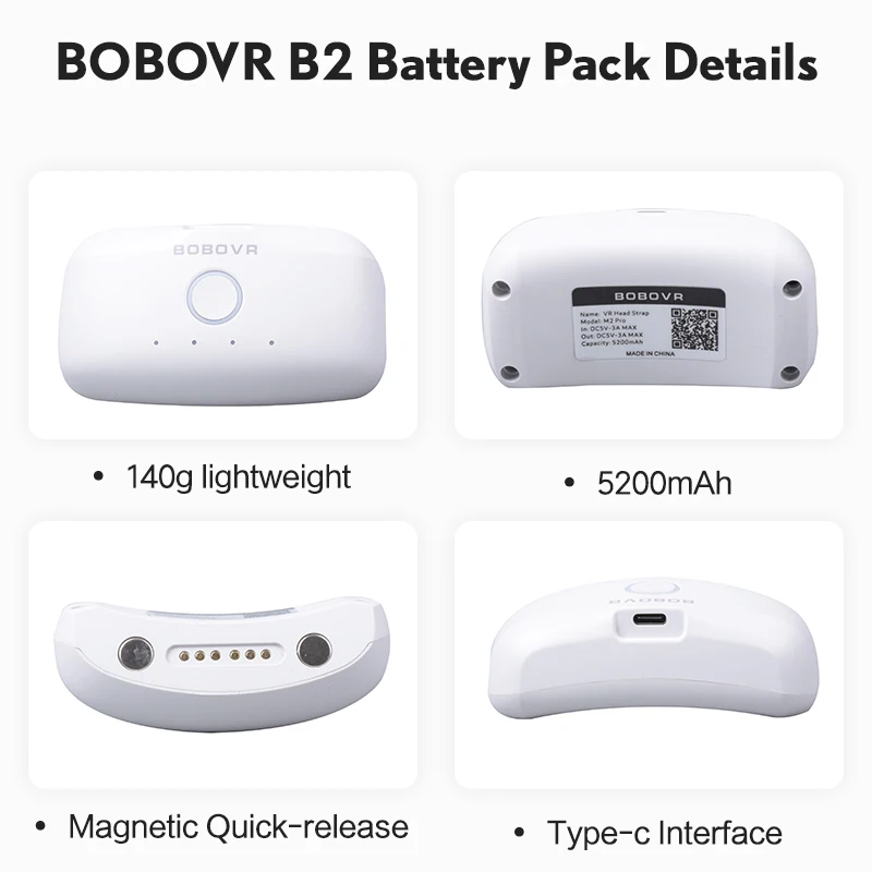 VR BOBOVR B2 배터리 팩 M2 프로 교체 배터리 Quest2 용 마그네틱 연결 약 3 시간 증가 5200mAh