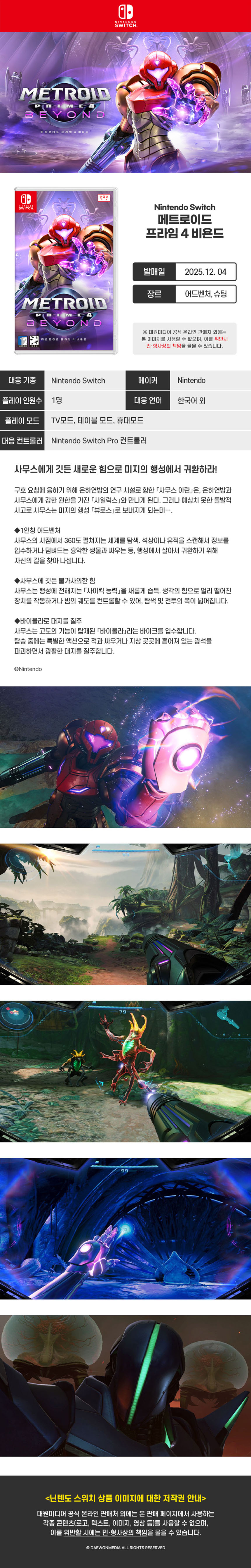 NS 닌텐도 스위치 메트로이드 프라임4 비욘드 게임팩 한글판 _예약판매 12/3 발송 예정