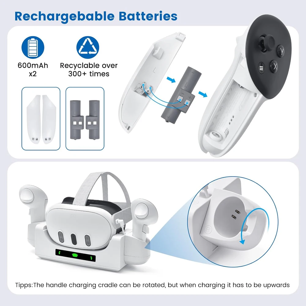 메타퀘스트 3 메타 퀘스트 용 충전 독 벽 마운트 오큘러스 VR 액세서리 충전기 스테이션 컨트롤러 배터리