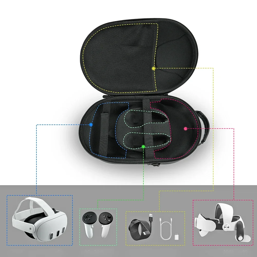 메타퀘스트 3 EVA 휴대용 방수 크로스백 백 조절식 어깨 스트랩 충격 방지 스크래치 메타 퀘스트 VR 헤드