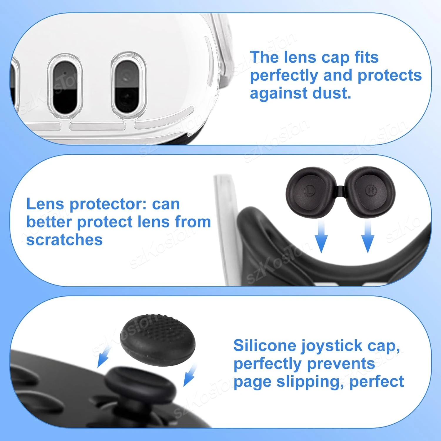 메타퀘스트 3 메타 퀘스트 용 VR 액세서리 키트 보호대 투명 보호 커버 쉘 컨트롤러 조이스틱
