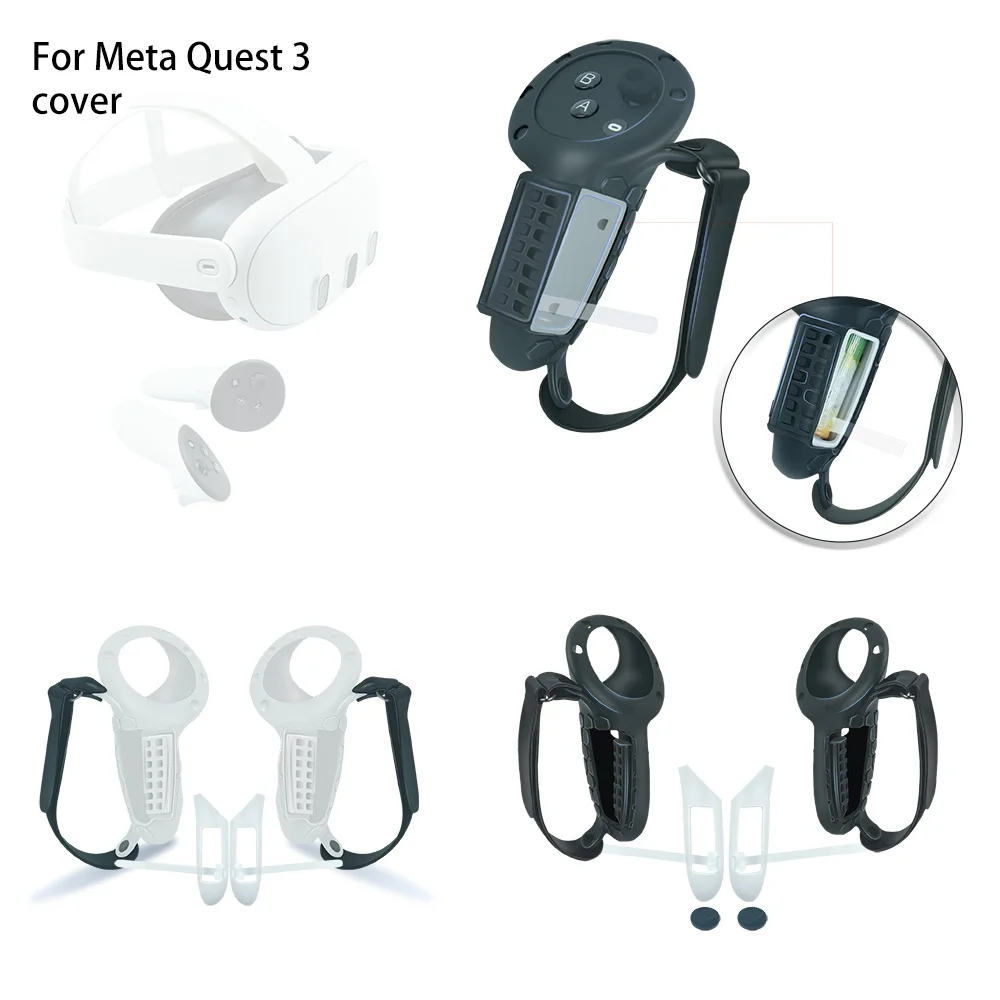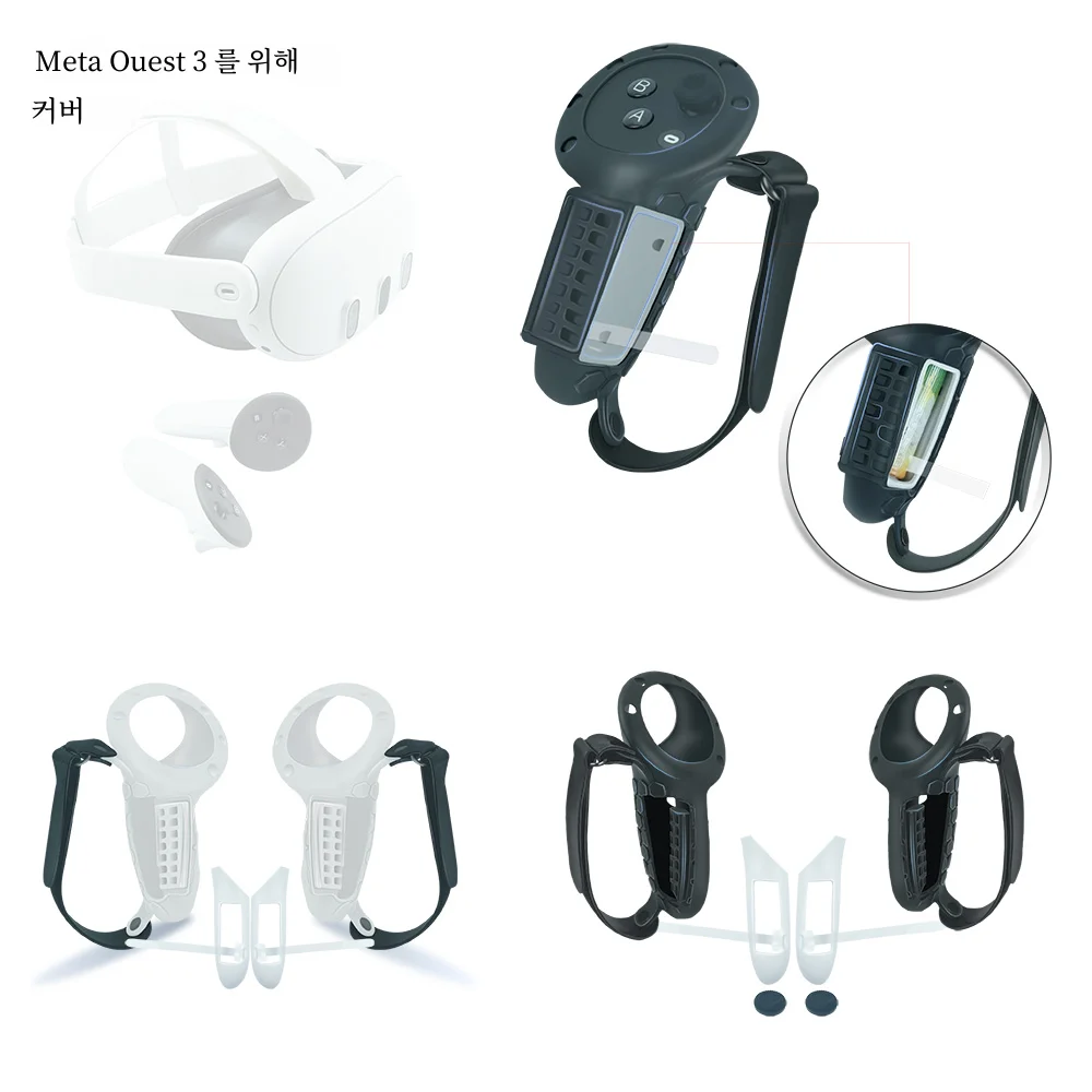 메타퀘스트 3 메타 퀘스트 컨트롤러 그립 확장 실리콘 VR 커버 보호대 배터리 개방