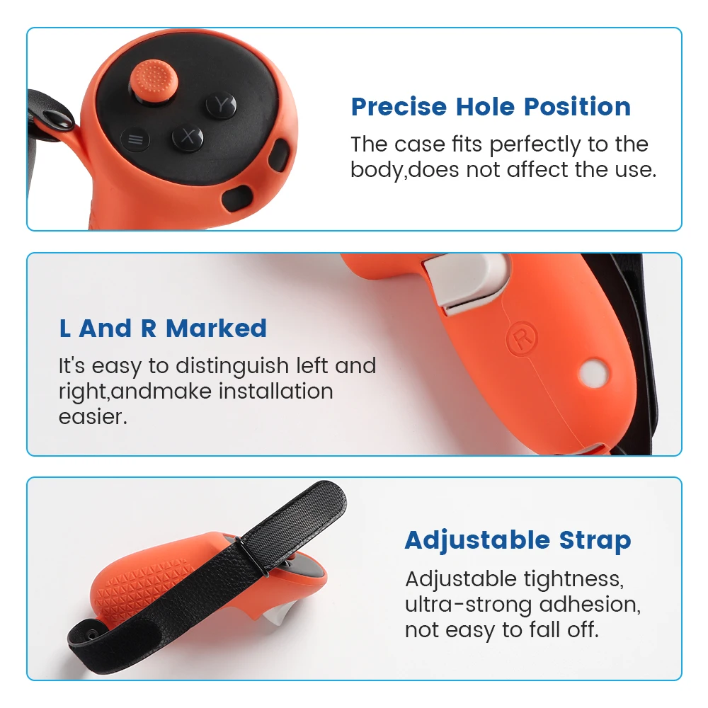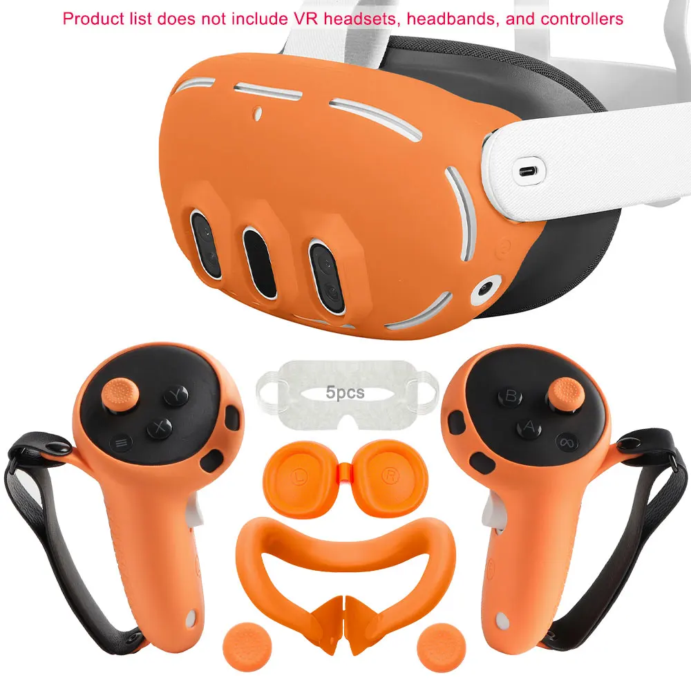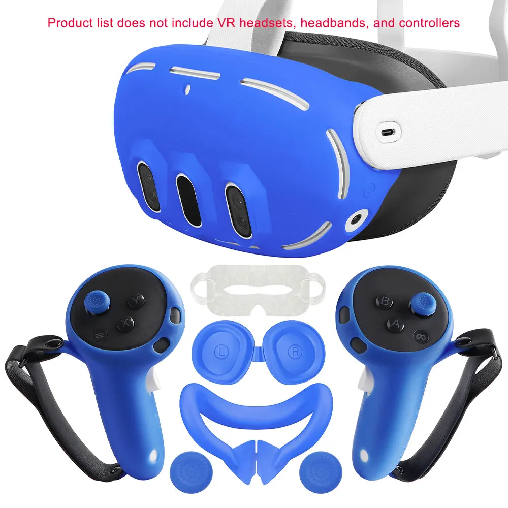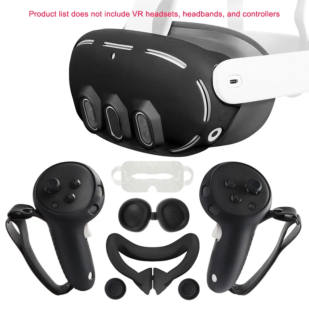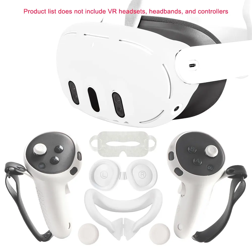 메타퀘스트 3 VR 헤드셋 컨트롤러 그립 쉘 케이스 실리콘 보호 커버 세트 메타 퀘스트 액세서리용 캡 페이