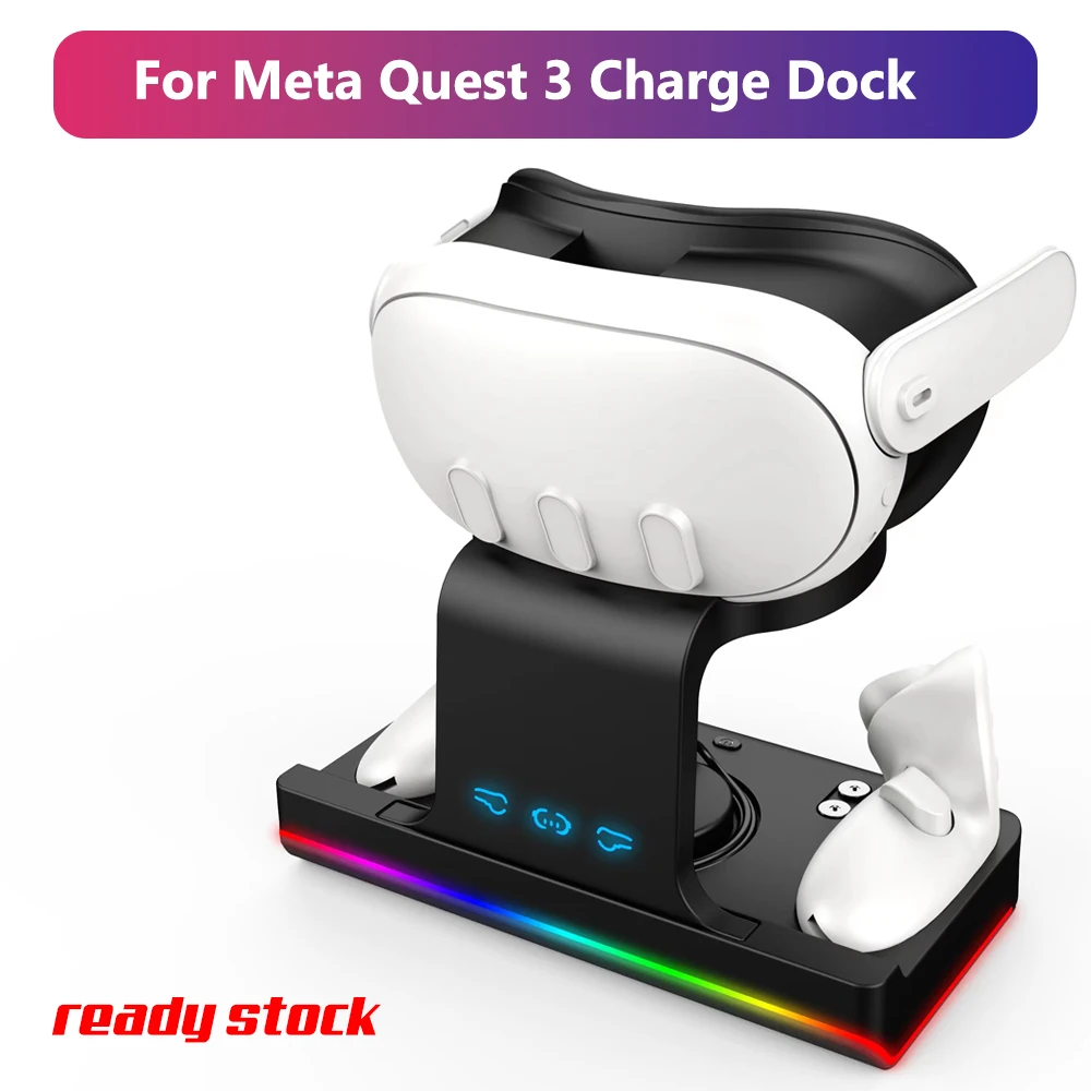 메타퀘스트 3 메타 퀘스트 용 RGB 충전 독 오큘러스 VR 액세서리 충전기 스테이션 컨트롤러 배터리 팩 엘리