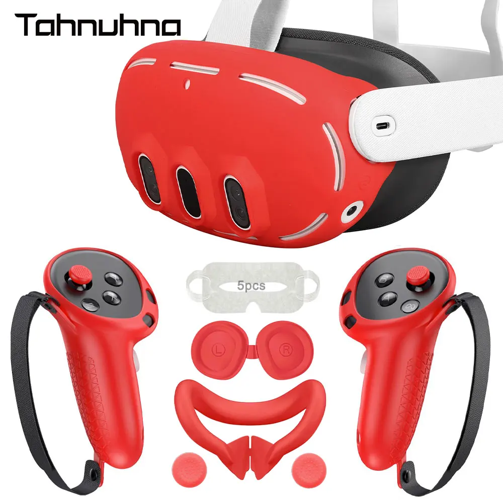 메타퀘스트 3 VR 보호 커버 세트 메타 퀘스트 헤드셋 컨트롤러 그립 실리콘 쉘 케이스 캡 페이스 액세서리