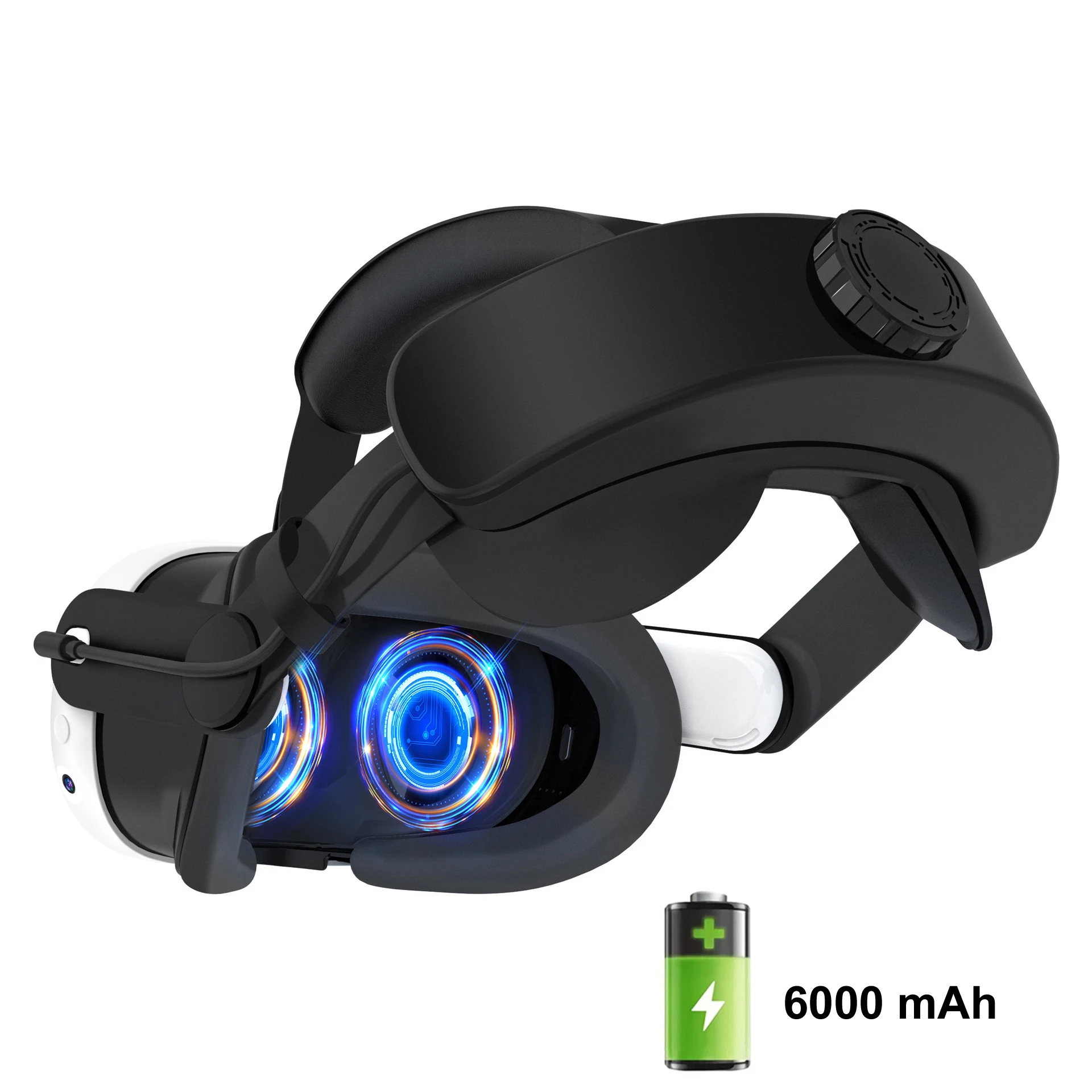 메타퀘스트 3 메타 퀘스트 VR 헤드셋용 T1 엘리트 스트랩 조절식 헤드 액세서리 6000mAh 배터리 충전 없음