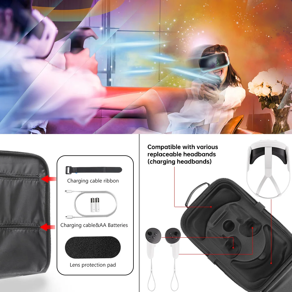메타퀘스트 3 어깨 스트랩 EVA 휴대용 운반 케이스 메타 퀘스트 VR 헤드셋용 넓은 공간 하드 캐리 백 패드