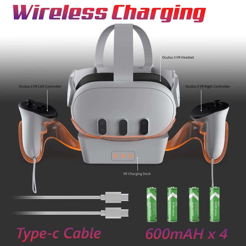 메타퀘스트 3 메타 퀘스트 용 무선 충전 독 RGB 오큘러스 VR 액세서리 충전기 스테이션 컨트롤러 배터리