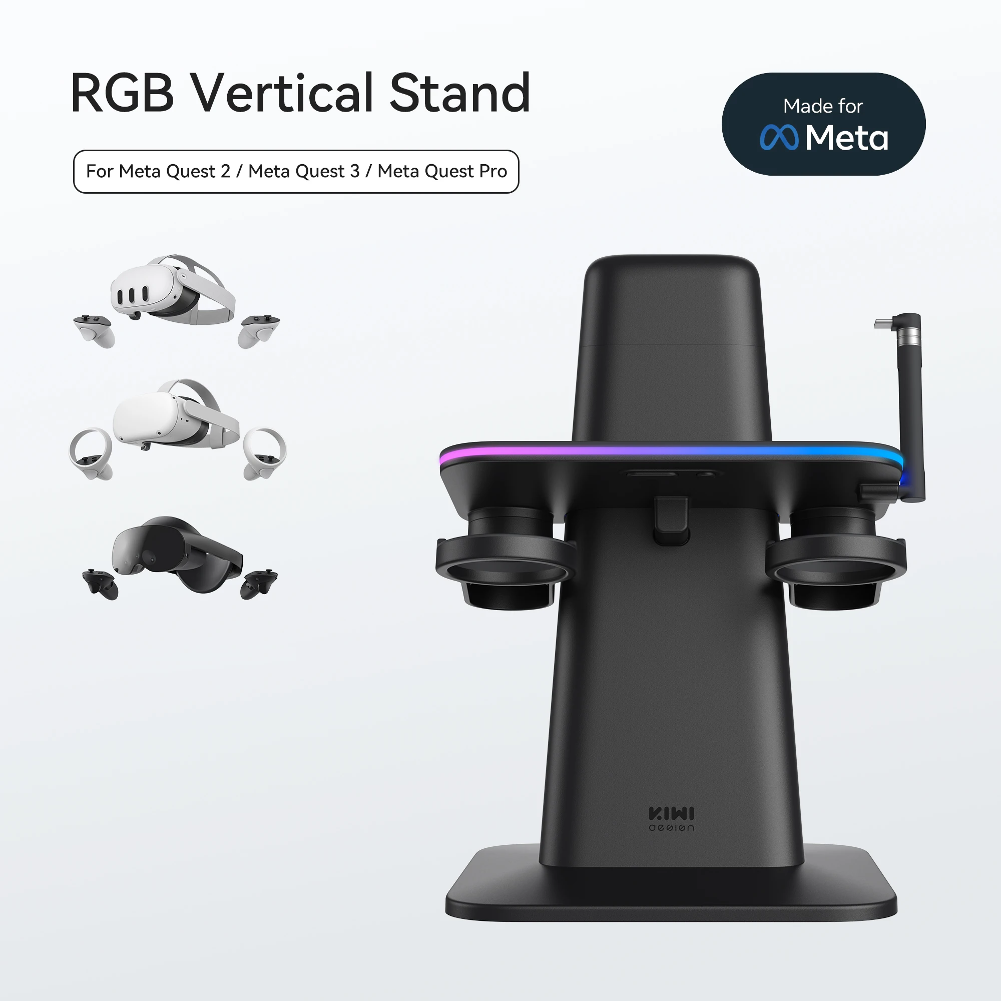 메타퀘스트 3 KIWI 디자인 RGB 수직 충전 스탠드 메타 오큘러스 퀘스트 2 프로 액세서리 공동