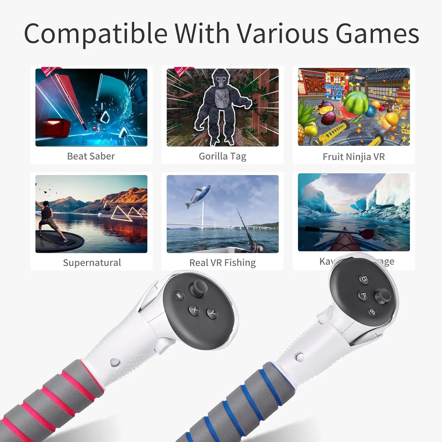 메타퀘스트 3 VR 게임 핸들 메타 퀘스트 컨트롤러 긴 팔 그립 야구 배드민턴 비트 세이버 액세서리 향상