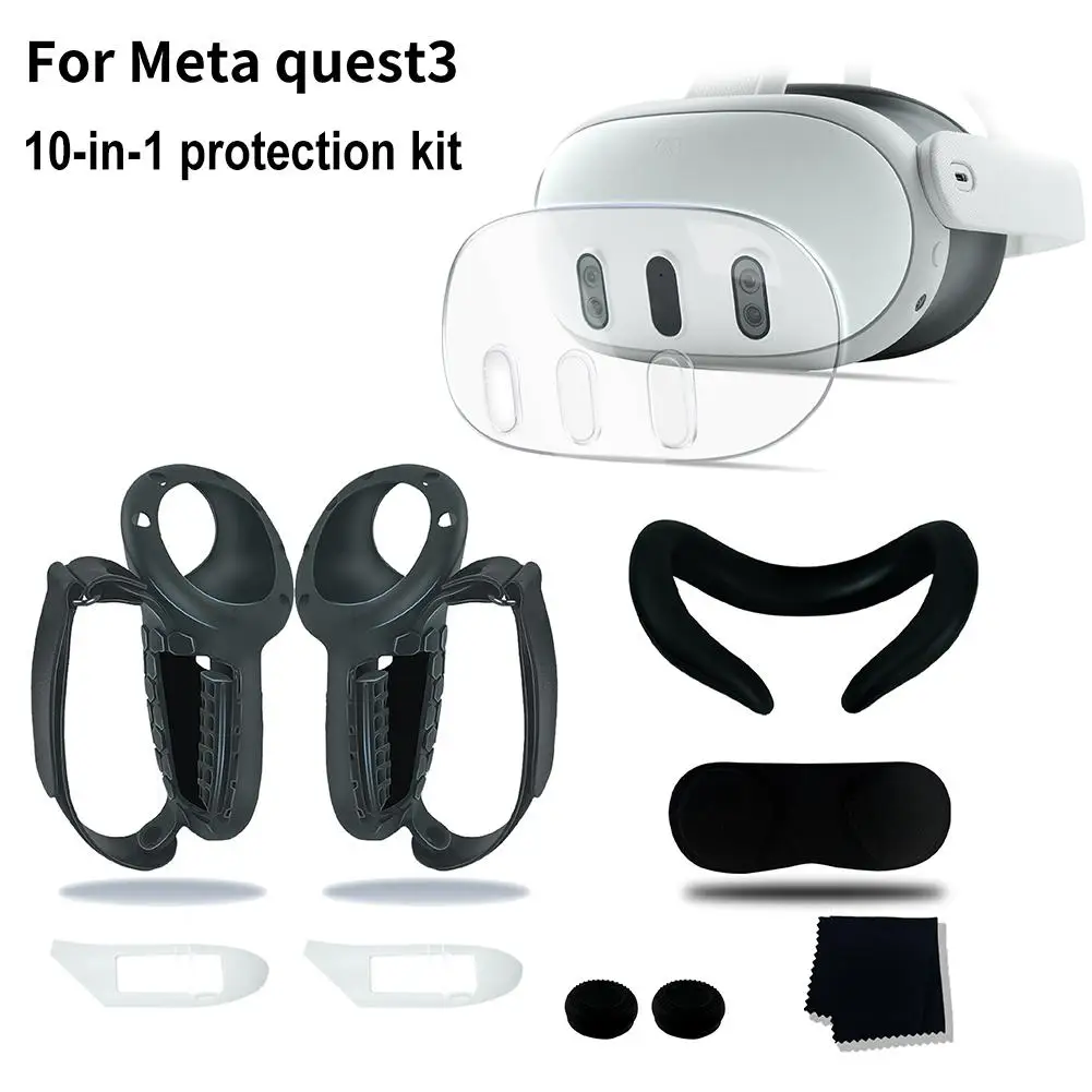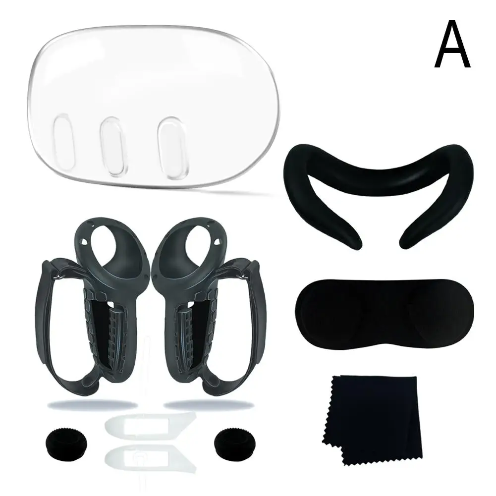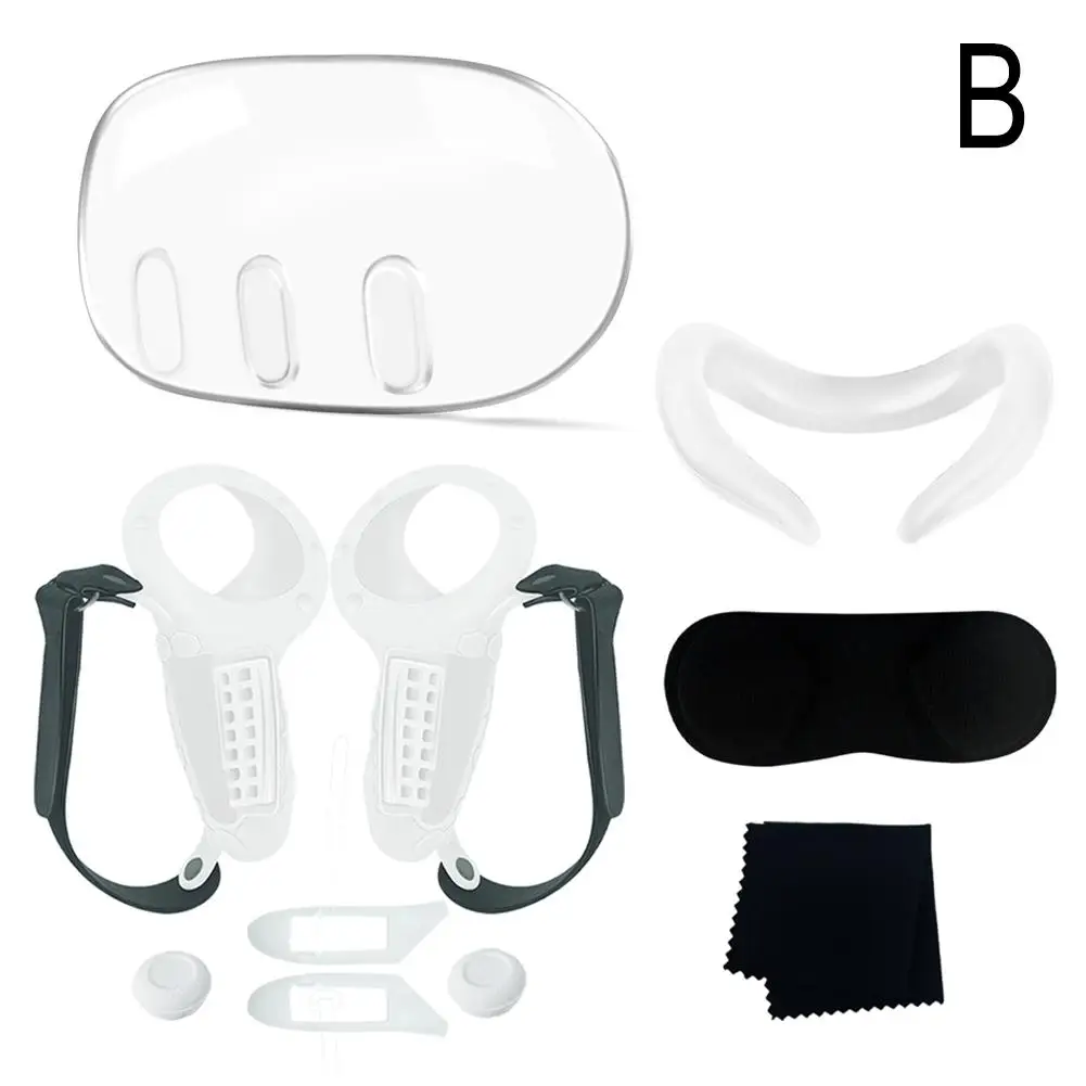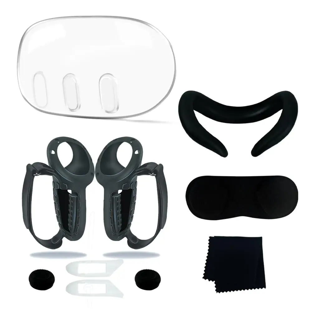 메타퀘스트 3 메타 퀘스트 VR 액세서리용 실리콘 커버 세트 컨트롤러 그립 전면 쉘 헤드셋 페이스 보호대
