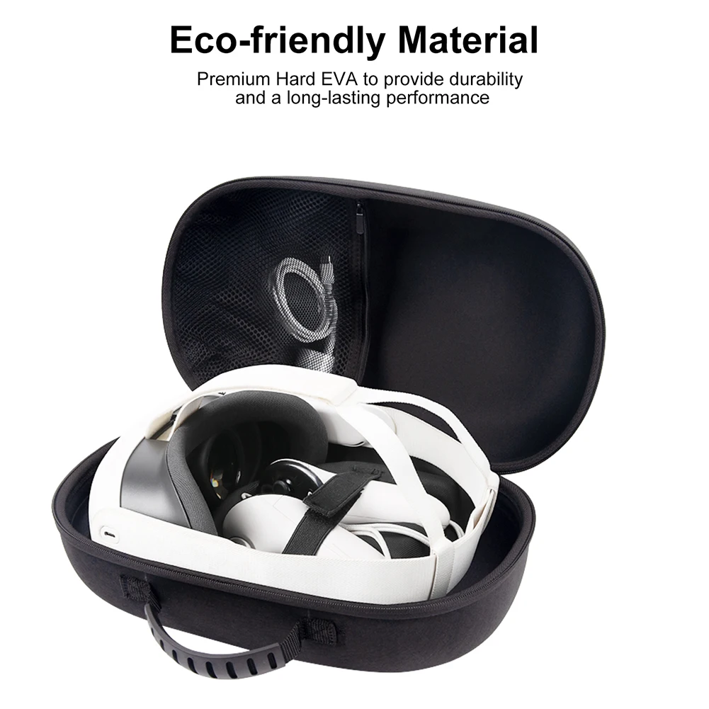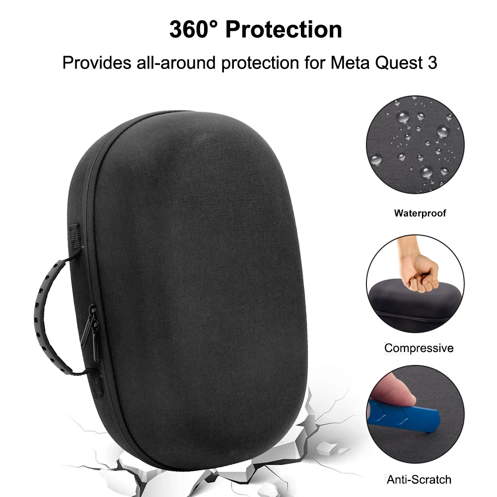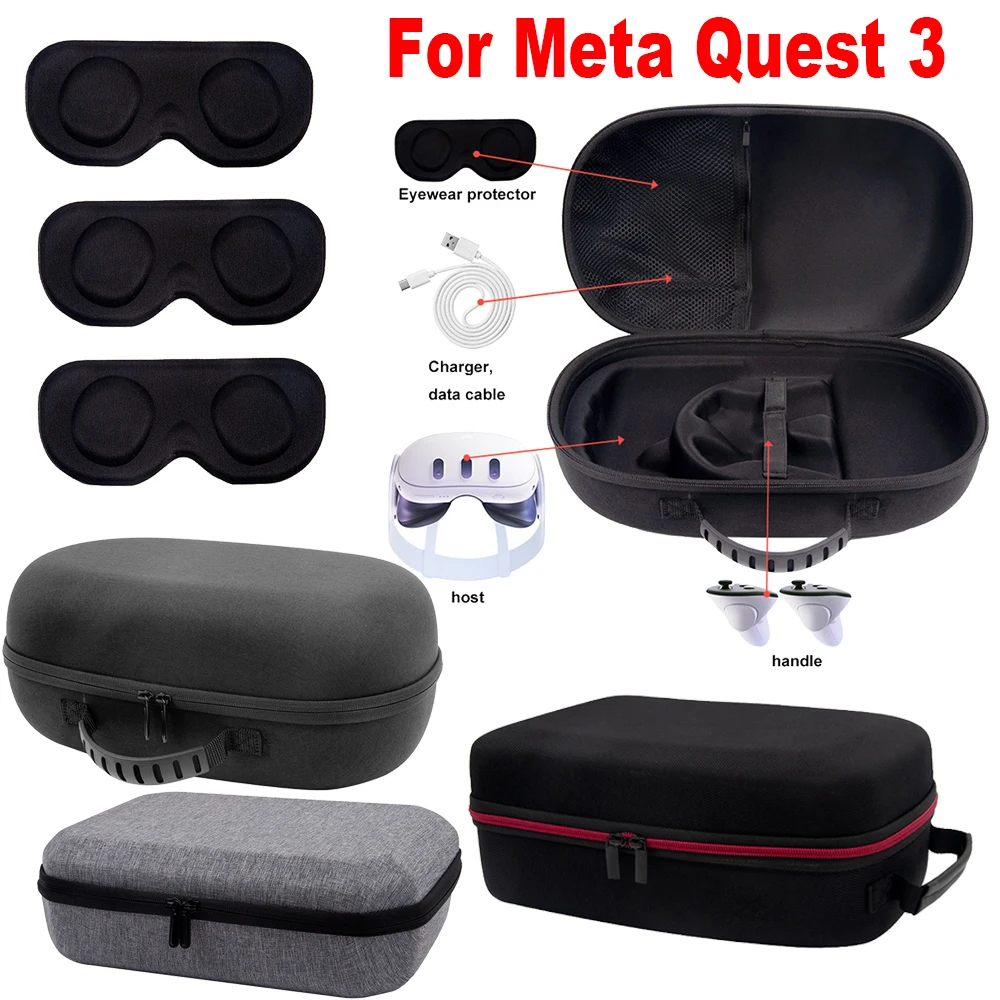 메타퀘스트 3 커버가 있는 보호 박스 보관 가방 메타 퀘스트 VR 헤드셋 호스트 핸들 충전 케이블 정리