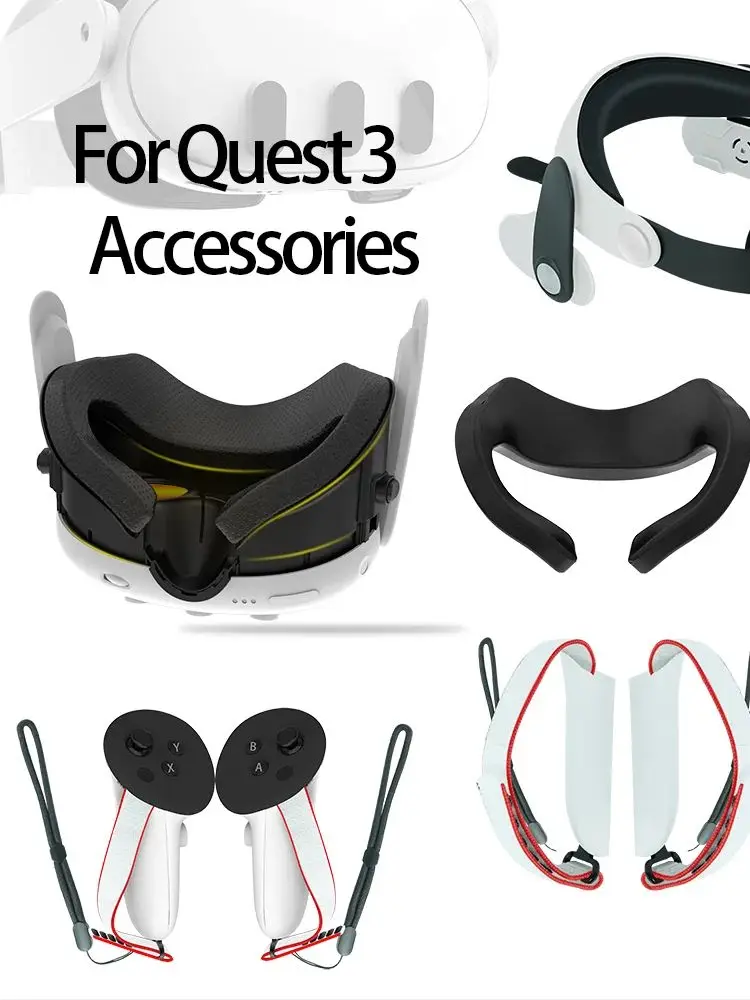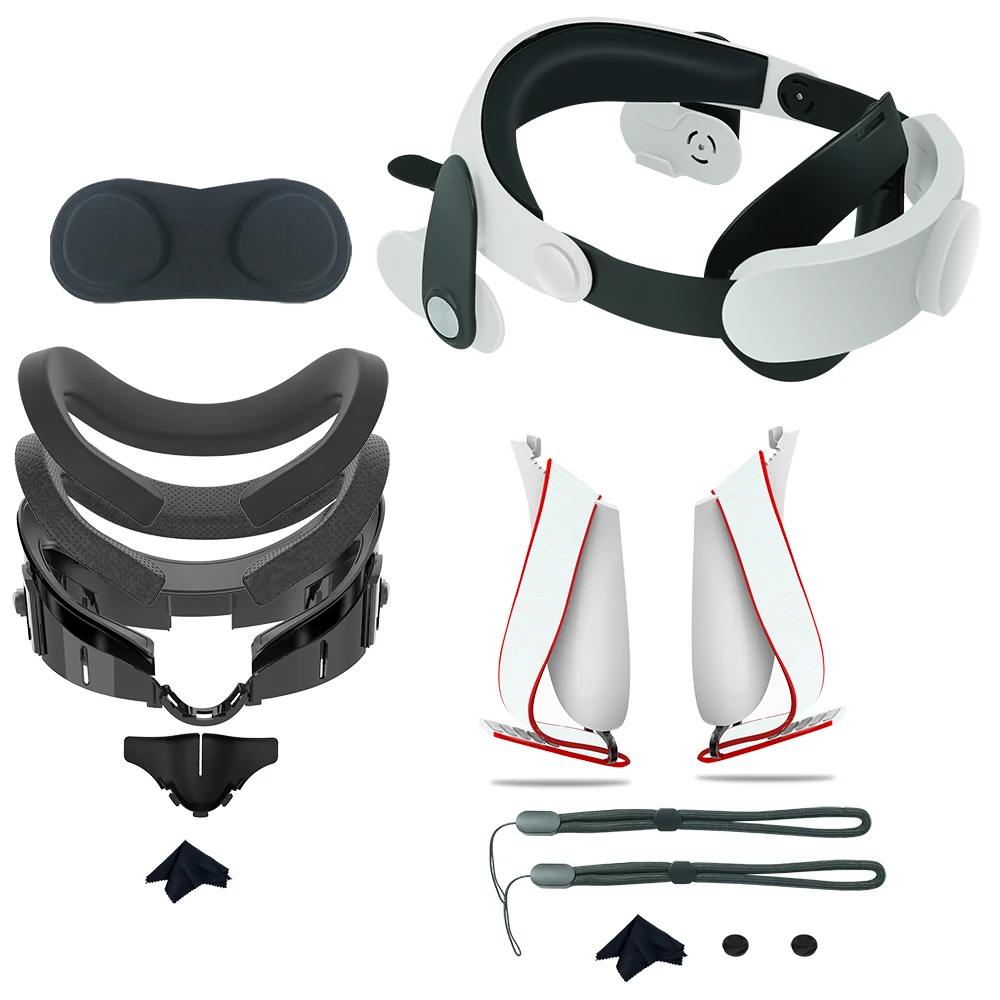메타퀘스트 3 조절식 편안한 헤일로 스트랩 및 컨트롤러 테더가 있는 페이셜 인터페이스 브래킷 메타 퀘스