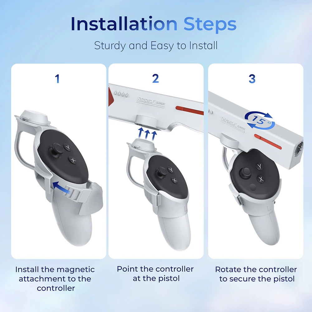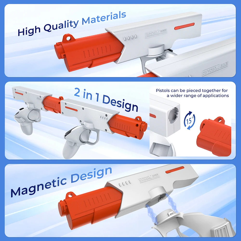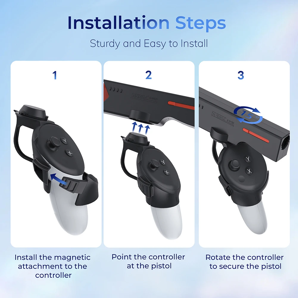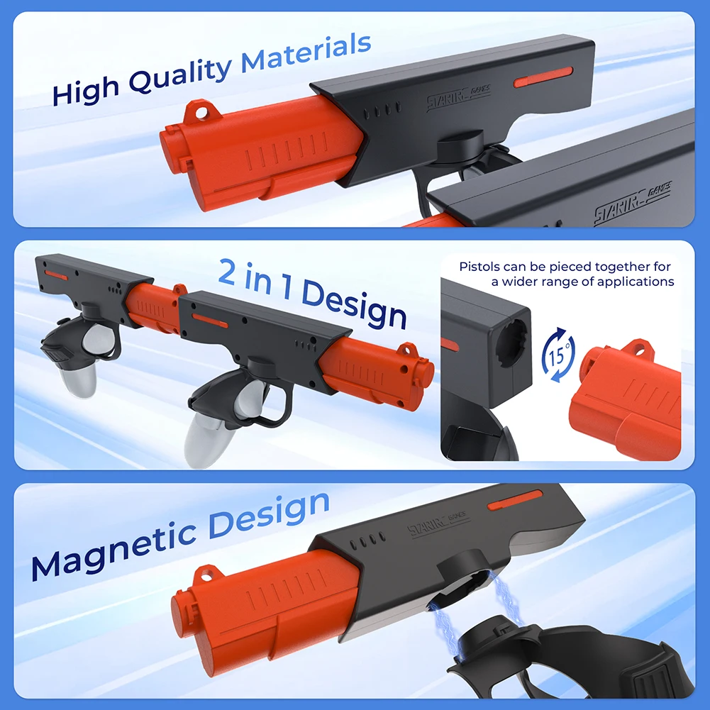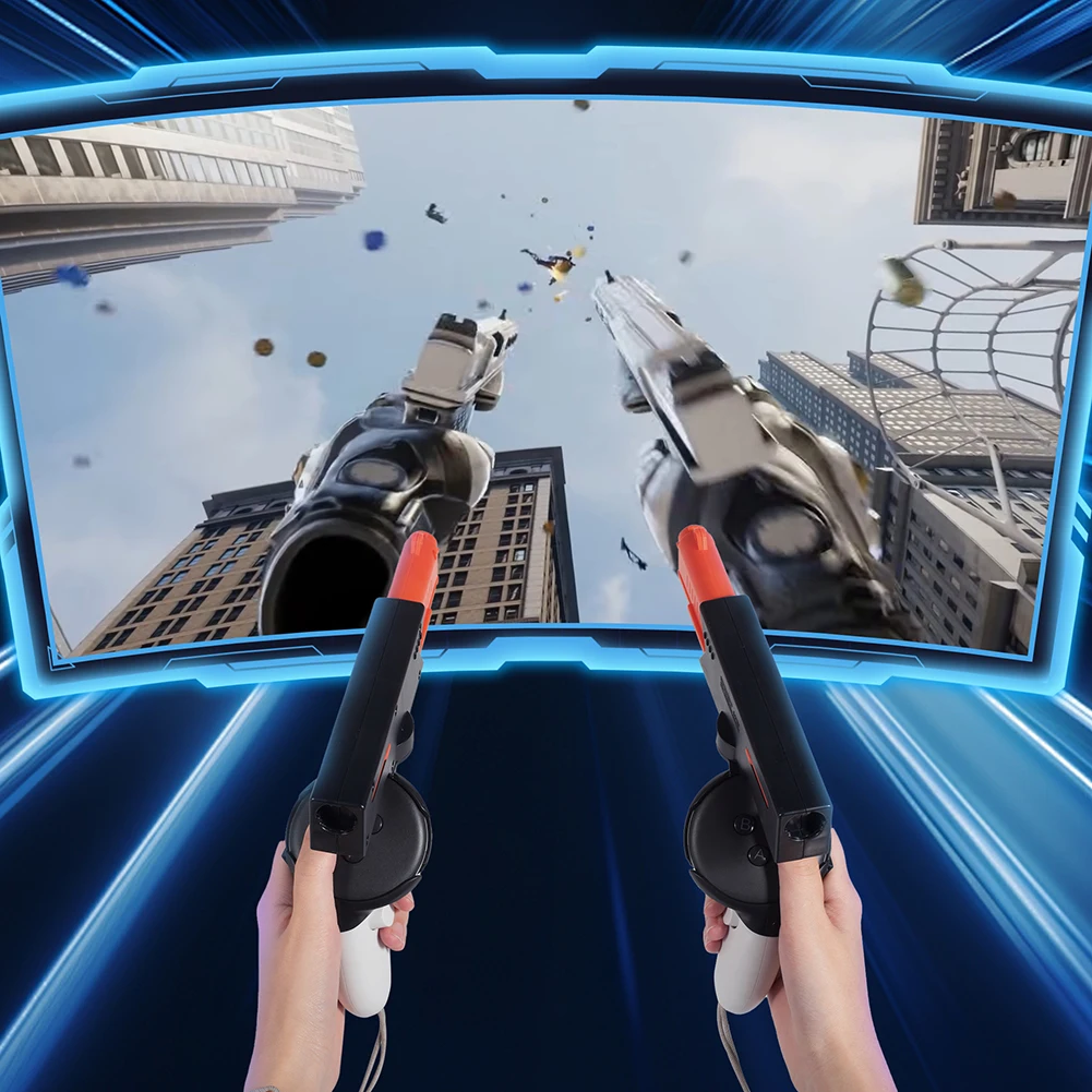 메타퀘스트 3 메타 퀘스트 컨트롤러용 VR 게임 권총 마그네틱 퀵릴리즈 그립 핸들 슈팅 경험 액세서리
