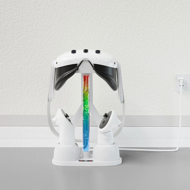 메타퀘스트 3 MetaQuest 헤드셋에 한 LED 조명 컨트롤러 홀더가 있는 충전 도크