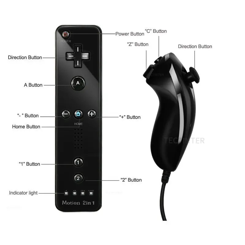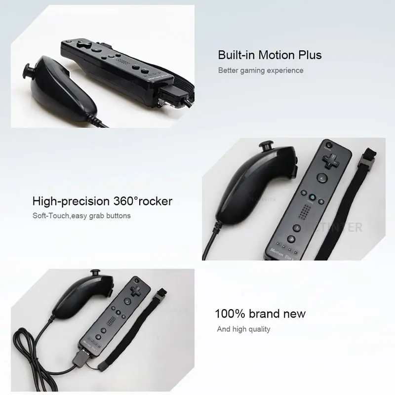이것은 닌텐도 Wii 콘솔과 호환되는 고민감하고 정확한 무선 원격 컨트롤러입니다. Wii 게임에 적합하며 Wii U 대부분의 게임을 지원합니다. 내장 스피커 및 모션 플러스진동 피드백 기능이 있습니다. 2 AA 배터리로 구동 (배터리는 포함되지 않음)