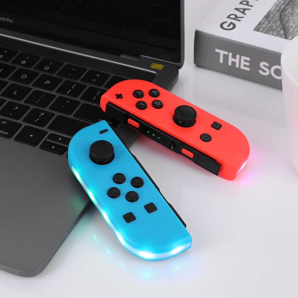 NS Switch Joy-Con 컨트롤러 용 무선 컨트롤러 핸드 스트랩 RGB 라이트 3D 조이스틱이 있는 왼쪽 및 오른쪽 블루투스 호환 콘솔 컨트롤러