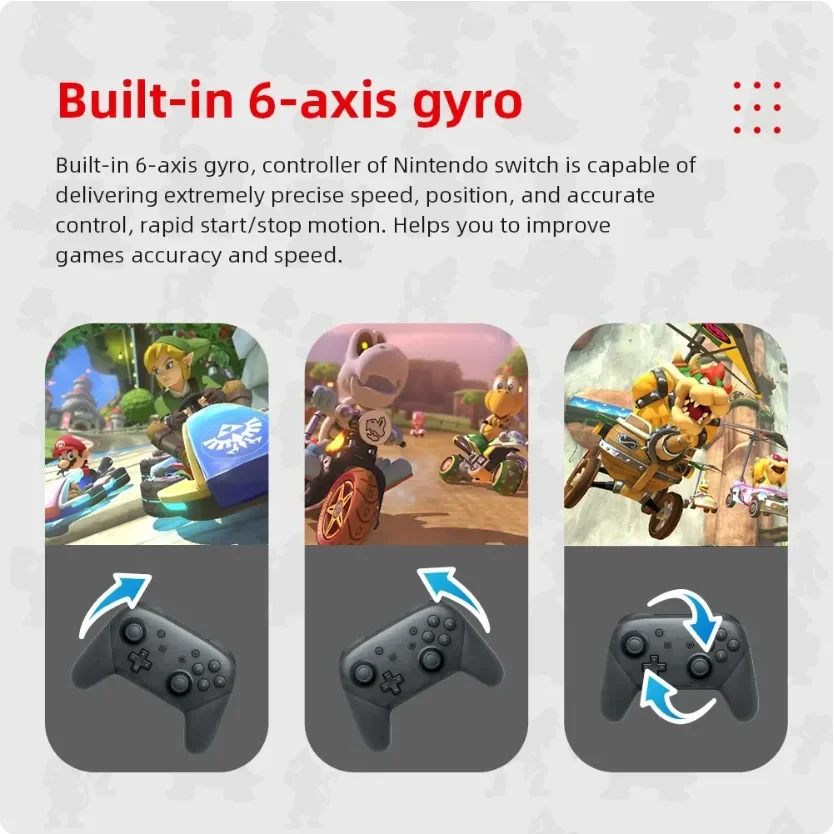 ? 6 축 자이로 핸들:6 축 자이로 핸들은 정확한 컨트롤과 움직임을 제공하여 게임 성능과 즐거움을 향상시킵니다.