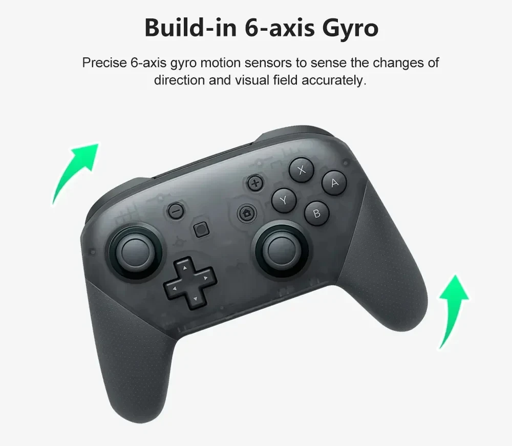 UP "업그레이드 버전 A! 무선 프로 컨트롤러는 게임 경험을 향상시킵니다: 모션 컨트롤 장착, 자이로 축 기능 및 듀얼 모터 진동 기능 지원. 진동 피드백은 매력적인 게임 경험을 제공합니다. 매우 민감한 버튼 감지는 정확한 게임 경험을 제공합니다. 듀얼 아날로그 스틱 및 확장 트리거는 정밀한 움직임 제어를 제공합니다.