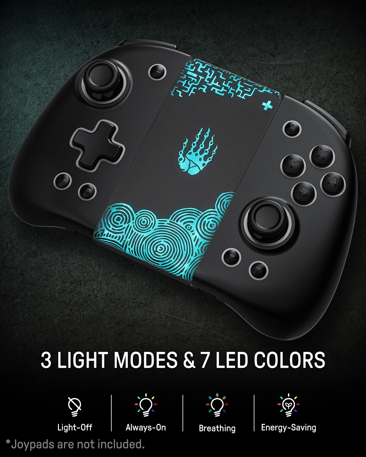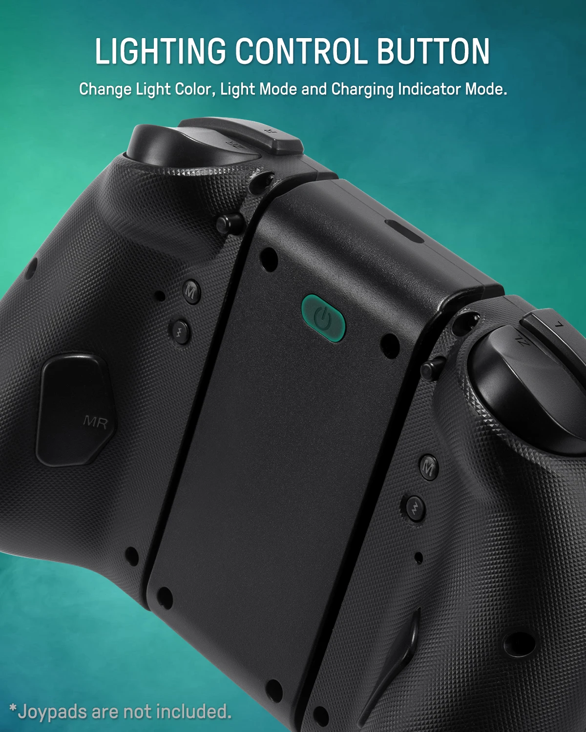 숨겨진 조명 디스플레이: FUNLAB 충전 그립은 3 가지 조명 모드를 제공합니다. 호흡 조명 모드, 항상 켜기 모드 및 에너지 절약 모드 조명 효과를 지능적으로 선택할 수 있습니다. 7 가지 색상과 빛나는 패턴으로 실용성과 독특한 시각적 매력을 제공합니다.