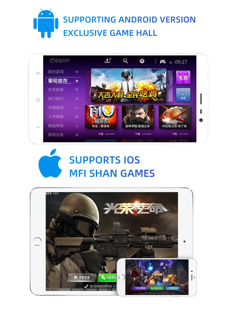 1) Bluetooth 직접 연결 핸들 (직접 연결 핸들이라고 함) 은 무선 Bluetooth Android/iOS 플랫폼 및 USB 유선 PC (XINPUT) 플랫폼에 적합합니다.