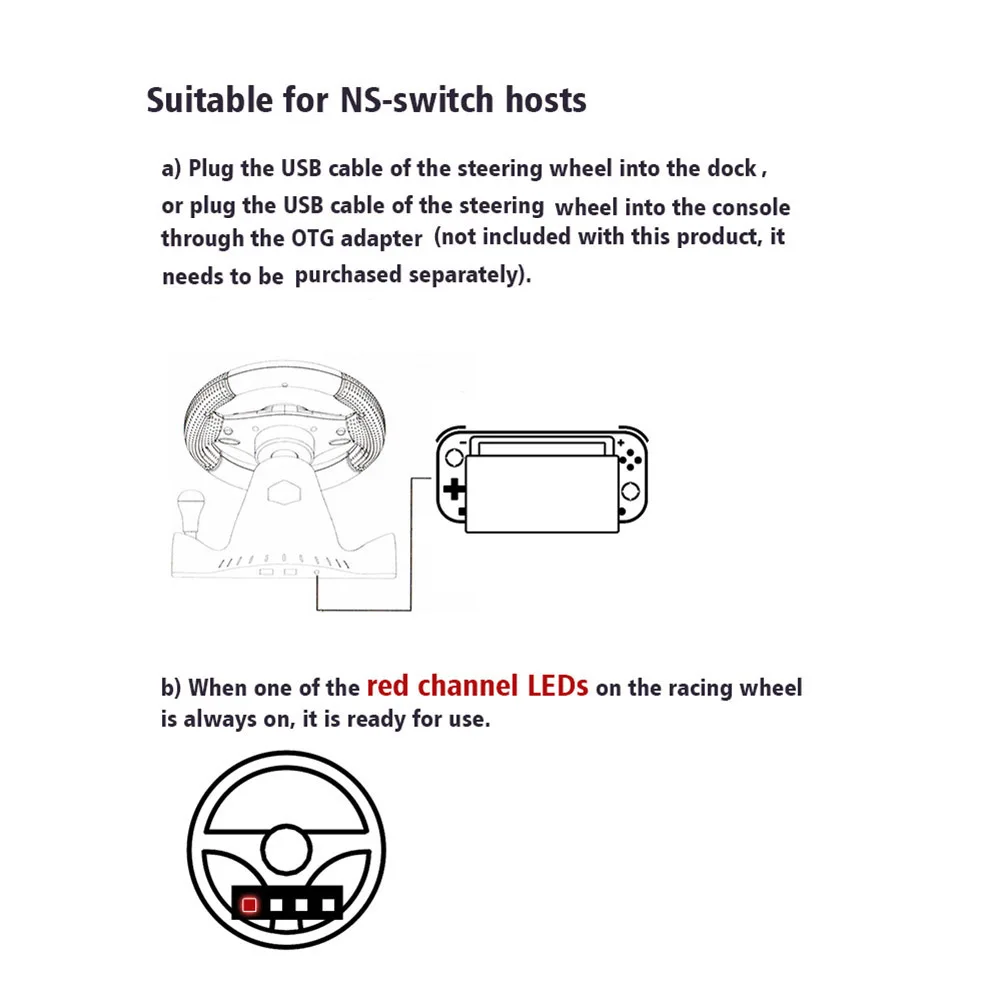 5. 지침:포함 된 지침은 레이싱 휠을 다른 장치에 설정하고 연결하는 간단한 과정을 안내합니다. PC/ /Nintendo Switch/Android 기기/PS4/ Xbox One 용 연결 여부에 관계없이 단계별 지침을 통해 즉시 레이싱을 시작할 수 있습니다.