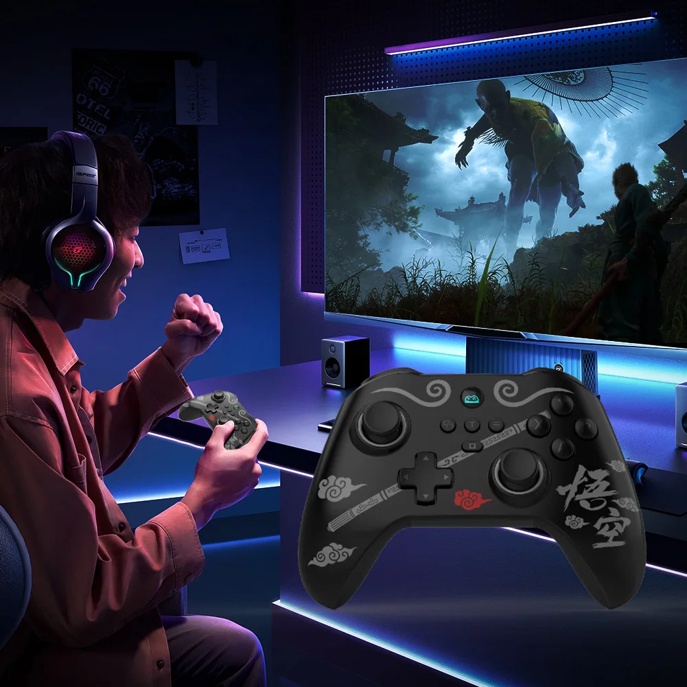 2. 정밀 e스포츠 조이스틱:고급 eSports Hall 조이스틱이 장착 된 Wukong 무선 제어 조이스틱은 POM 링과 금속 원으로 향상된 듀얼 아날로그 스틱을 특징으로하여 경쟁 게임을위한 정확한 정확도와 부드러운 움직임을 제공합니다.