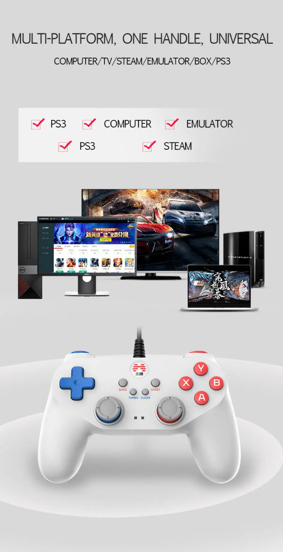 Betop D2E 는 거실 게임 및 TV 컴퓨터 게임용 유선 컨트롤러에 적합합니다. PC, 스마트 TV, 및 기타 장치에 적합한 간단한 작동, 플러그 앤 플레이, 핸들은 기본적으로 STEAM 플랫폼을 지원하며 드라이버없이 플러그 앤 플레이, 핸들을 컴퓨터에 연결하여 재생할 수 있습니다. 핸들 그립에는 크고 작은 진동 모터가 내장되어 있으며 섬세한 진동 피드백으로 게임이 재미 있습니다.