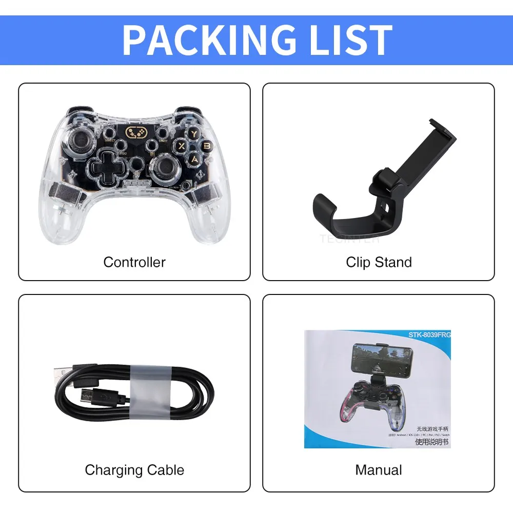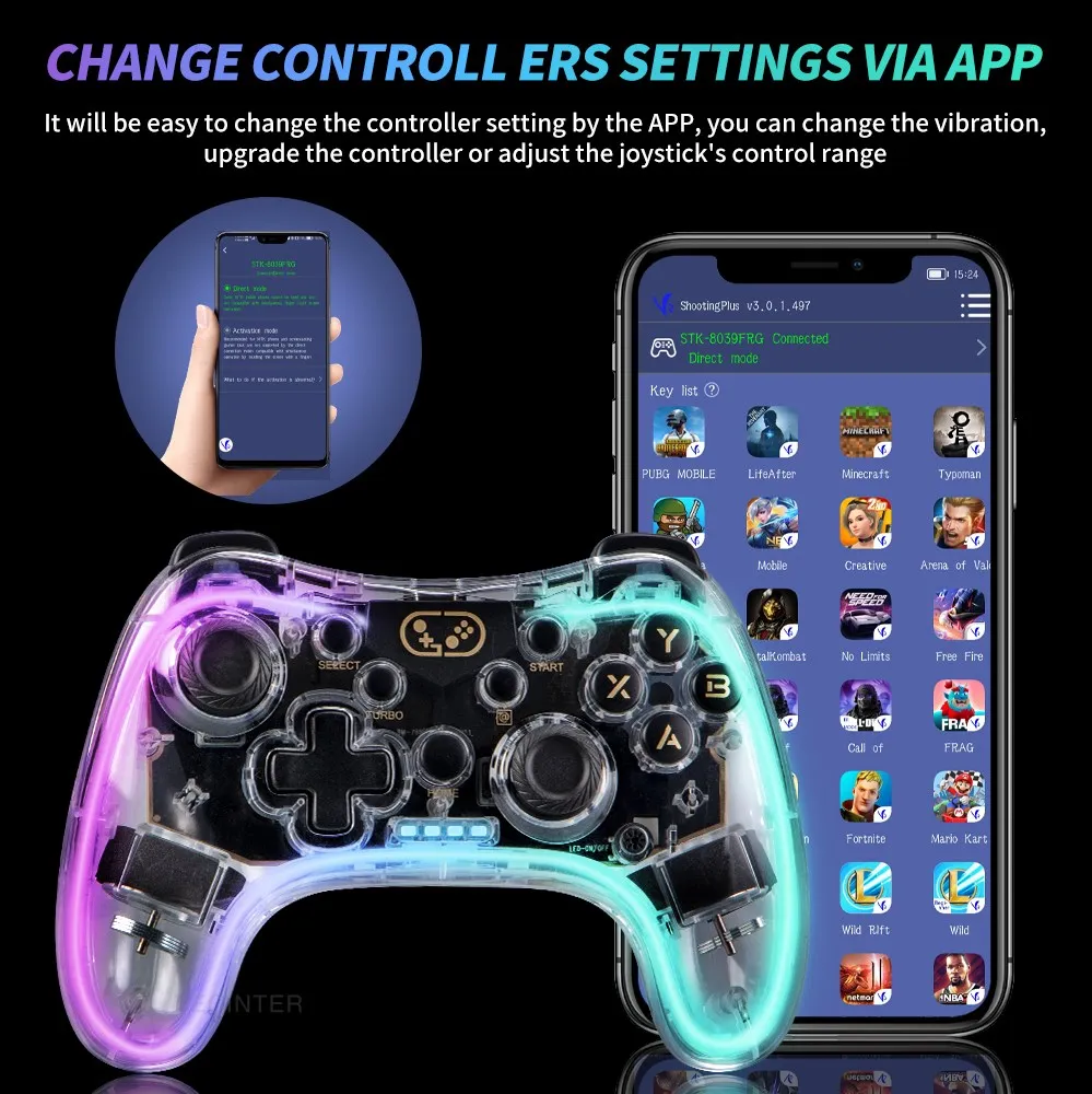 이 무선 RGB 블루투스 컨트롤러는 Nintendo Switch/OLED/Lite 용으로 특별히 설계되었습니다. 스팀, 안드로이드, iOS ,PC 및 안드로이드 TV BOX에도 적합합니다. 내장 된 600Mah 배터리, 그것은 오래 지속되는 게임 세션을 보장합니다. 원 클릭 스크린 샷, 페어링 및 각성 기능은 스위치 용으로 설계되었습니다. 포함 된 프로그래밍, 6 축 자이로 스코프, 터보, 듀얼 모터 진동은 독특한 게임 경험을 제공합니다!