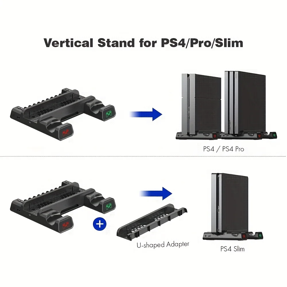 PS4 슬림 및 프로 듀얼 컨트롤러 포트 충전기 도킹 스테이션 USB 포트 충전 및 게임 슬롯 10 개 PS4 스탠드