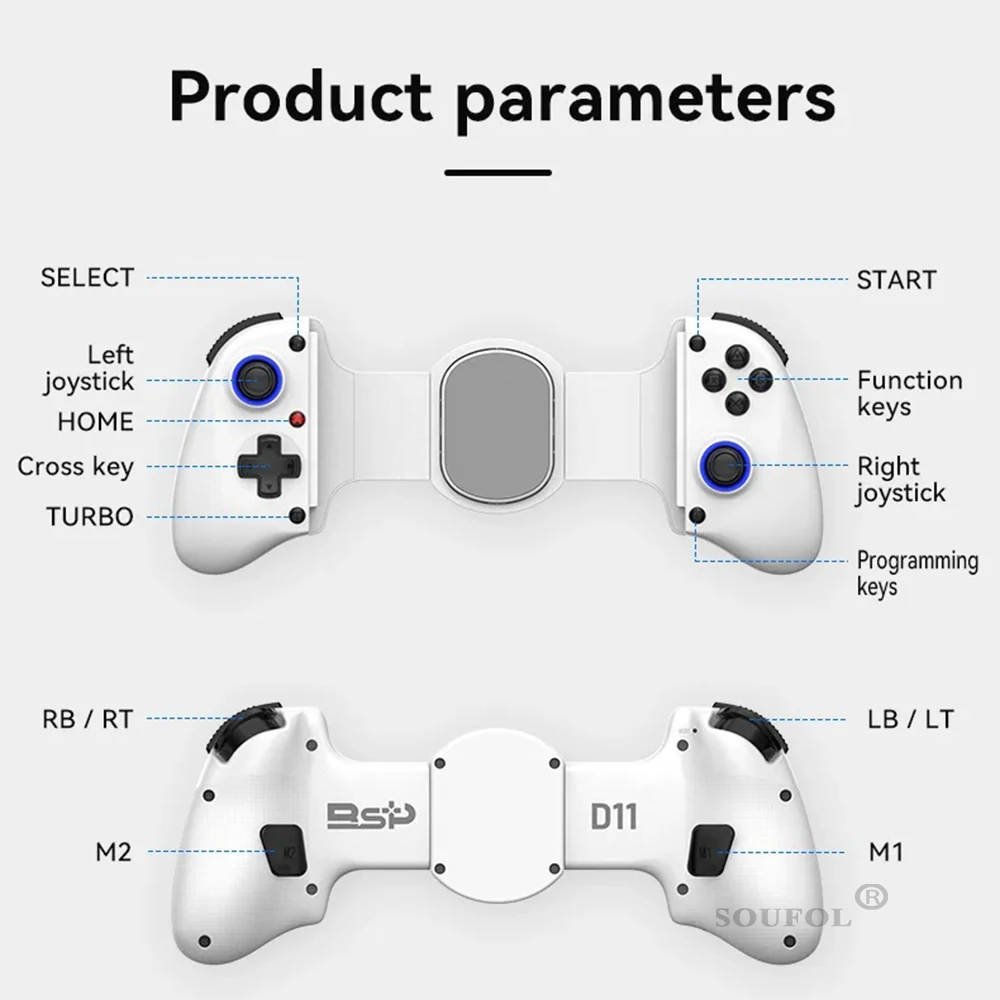 Android iOS PS4 스위치 콘솔용 터보/6 축 자이로/진동이 있는 BSP D11 텔레스코픽 게임 컨트롤러 휴대 전화 게임 패드