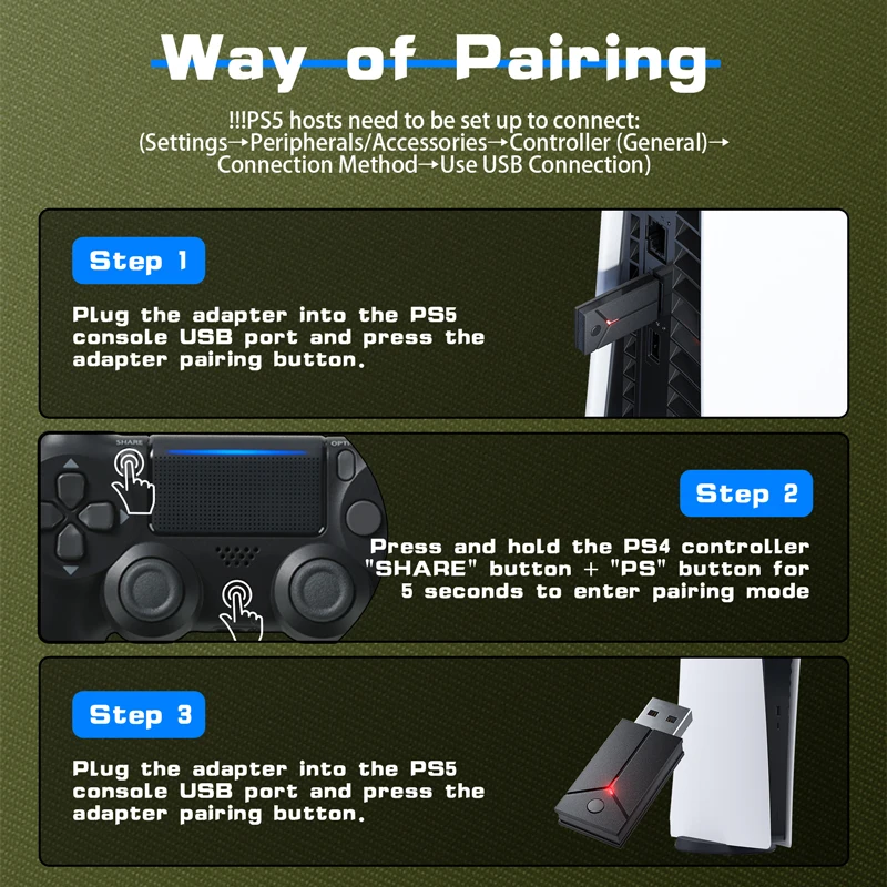 1. PS5 를 지원하기 위해 USB 수신기와 함께 사용