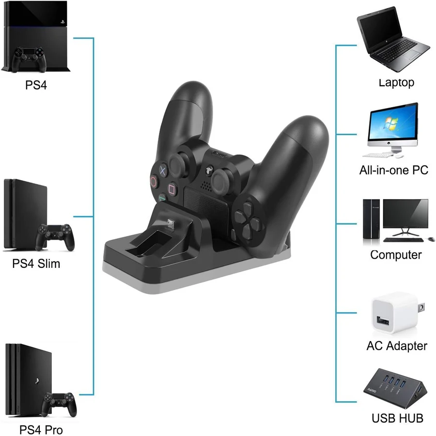 Playstation 4 DualShock 무선 컨트롤러용 PS4 컨트롤러 충전기 듀얼 충전 스테이션 도크 (PS4, PS4 Pro, PS4 Slim)