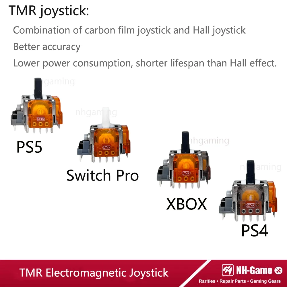 TMR 조이스틱은 카본 필름 조이스틱과 홀 조이스틱의 조합으로 홀 조이스틱만큼 정확도가 높고 전력 소비가 적으며 수명이 길다.