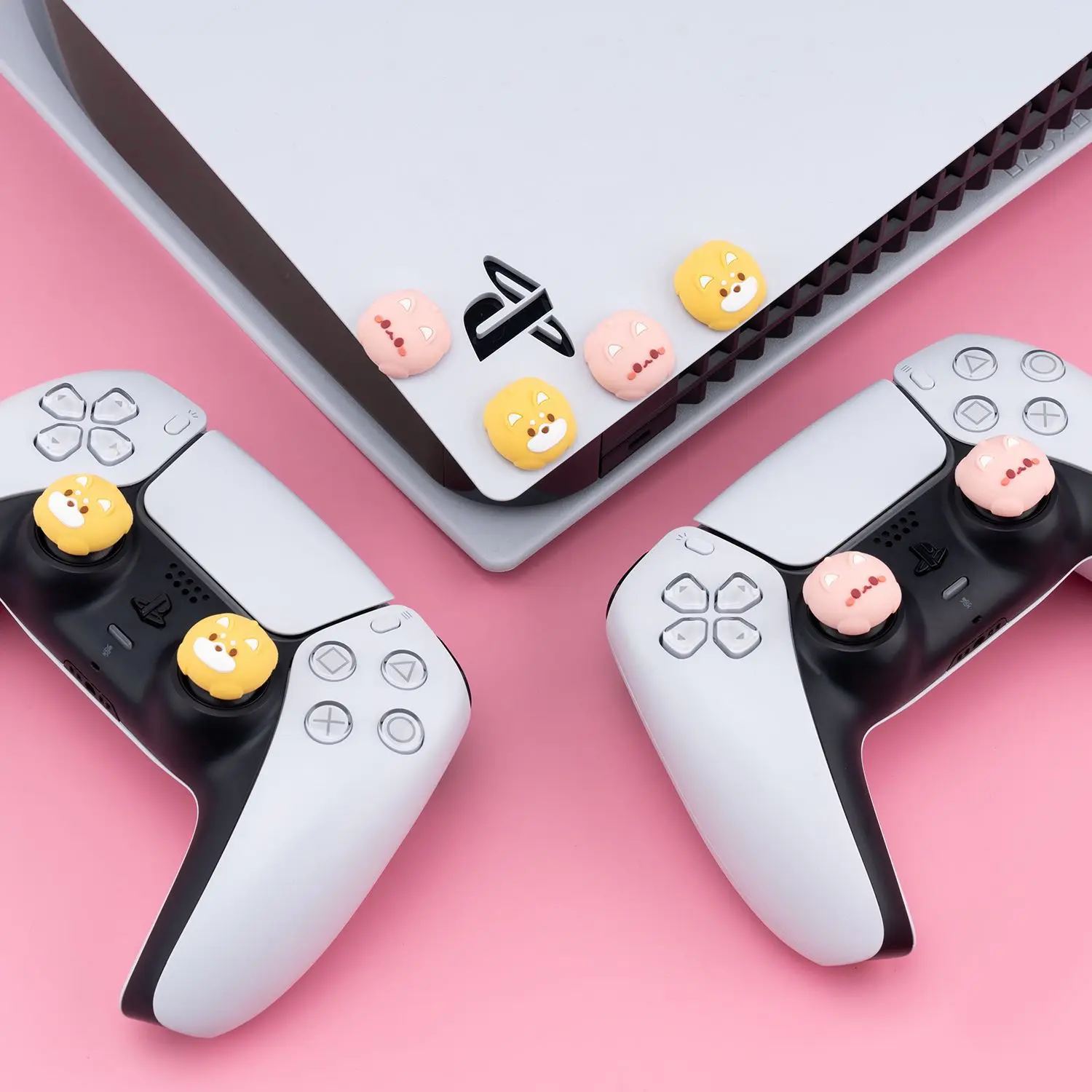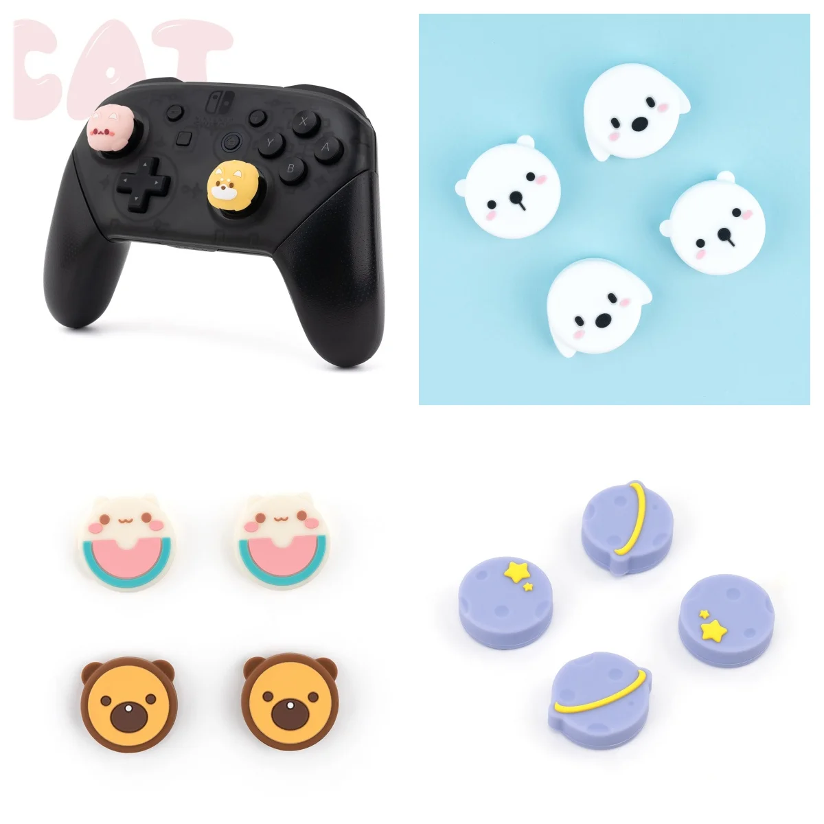 PSS/PS4/NS PRO Kawaii 조이스틱 캡 닌텐도 스위치 프로 컨트롤러 플레이 스테이션 5 용 소프트 실리콘 커버 4pcs 엄지 그립