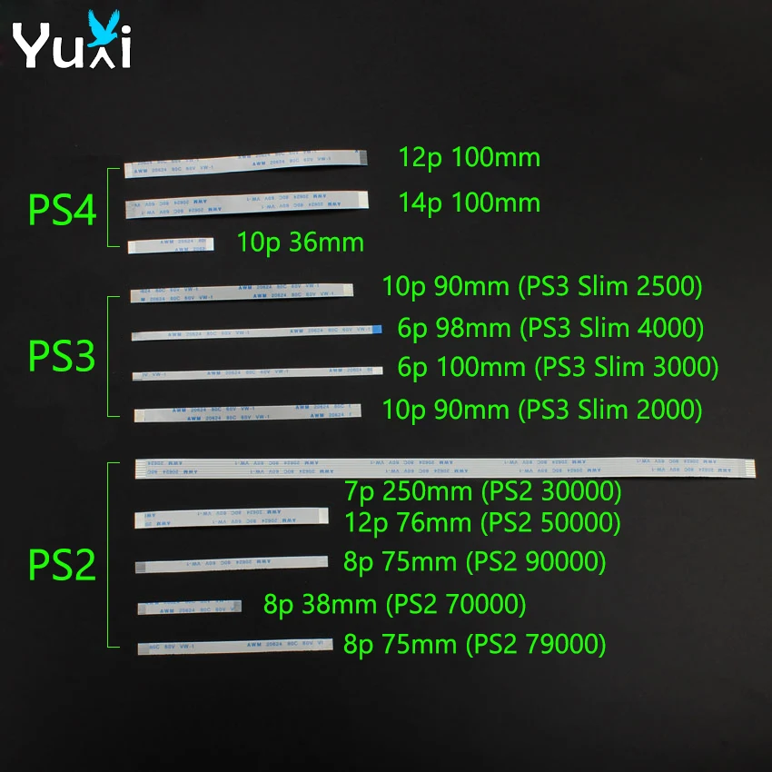 PS4 프로 슬림 컨트롤러 용 YuXi 10pcs 용 12 14 핀 플렉스 리본 케이블 PS2 용 슬림 유연한 플랫 케이블 3W 5W 7W 7W9 9W
