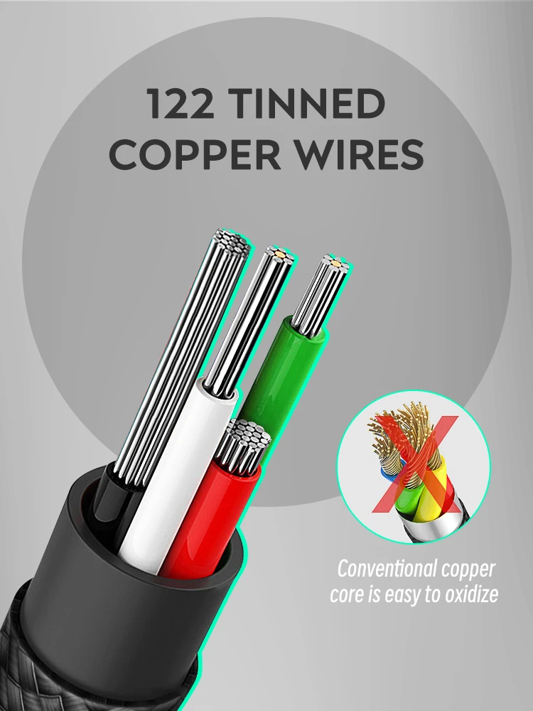 느린 충전으로 이어지는 장시간 노출 구리 및 산화를 피하기 위해 주석 도금 구리 코어를 122.
