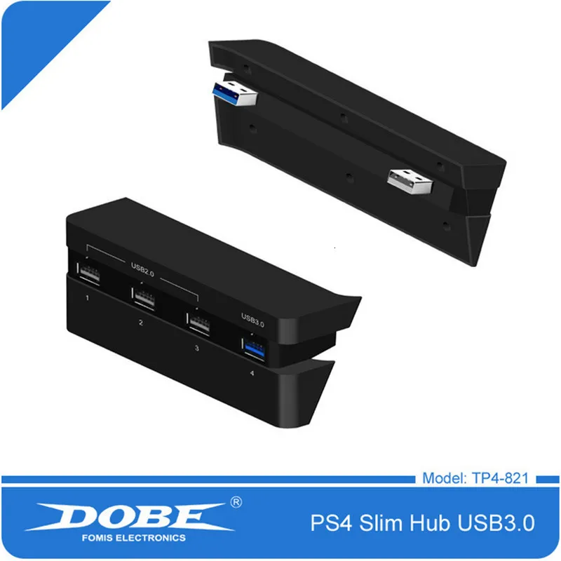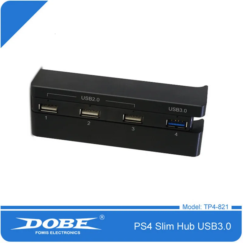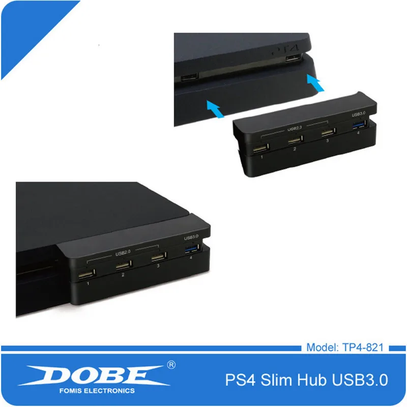 매끈하고 비스듬한 모양은 Playstation 4 Slim 콘솔의 디자인과 일치하며 LED 표시등을 통해 허브에 전원이 공급되고 있음을 알 수 있습니다.