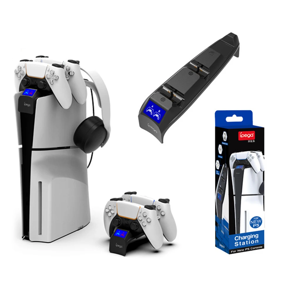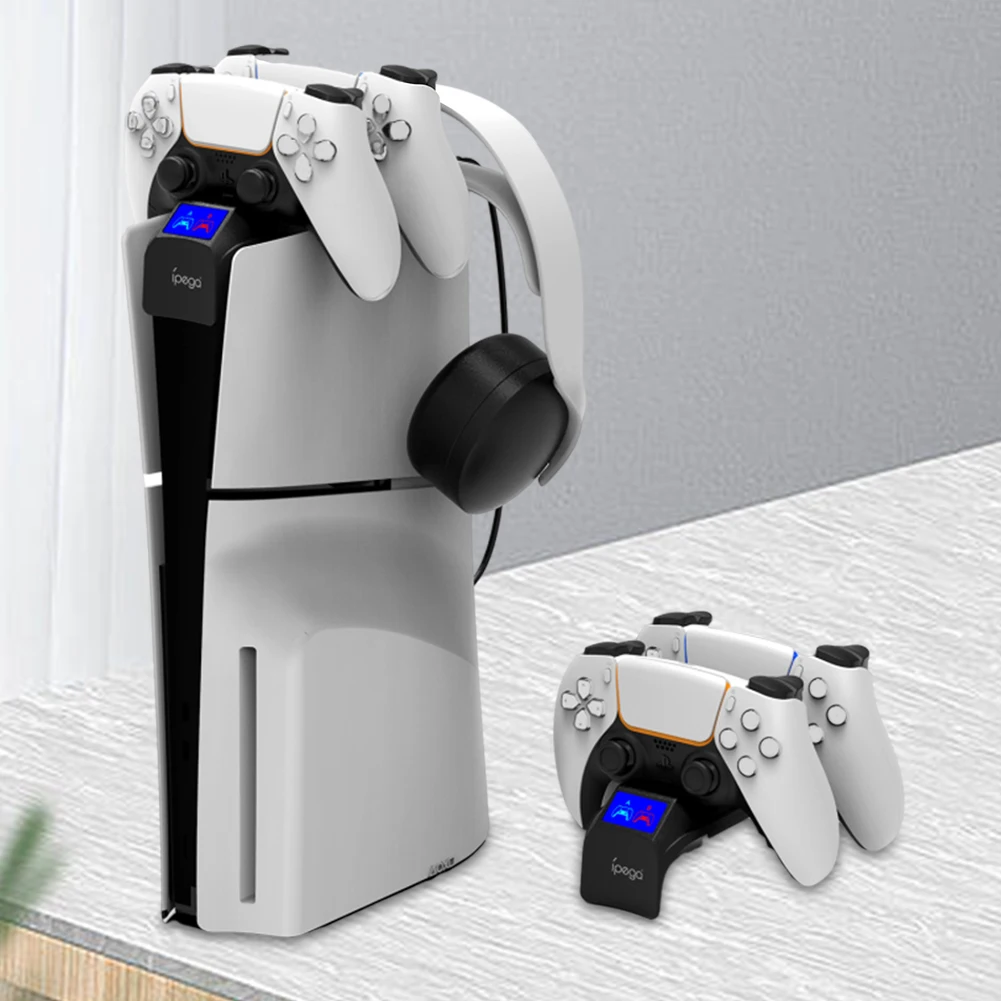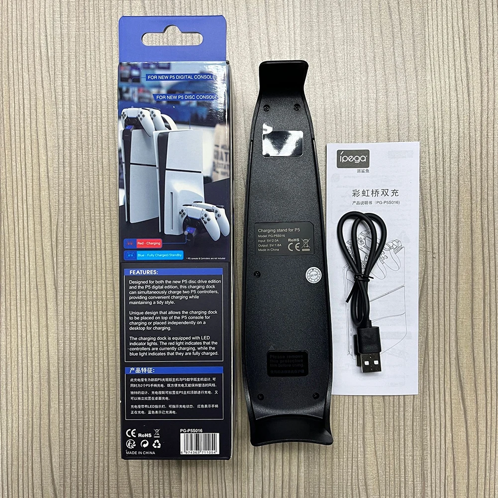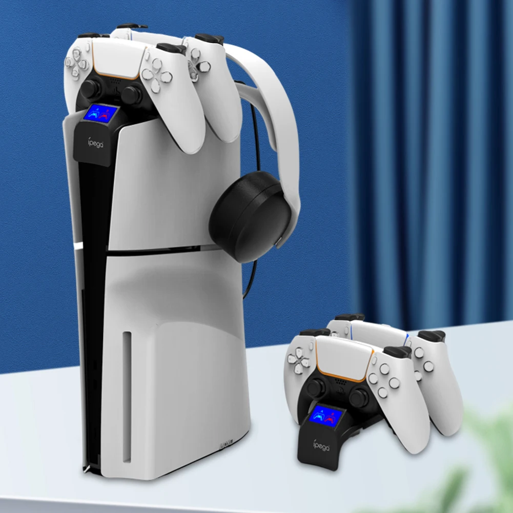 PS5 슬림 듀얼 컨트롤러 충전 도크 충전 스테이션 LED 라이트 충전 도킹 스테이션 용 플레이 스테이션 5 슬림