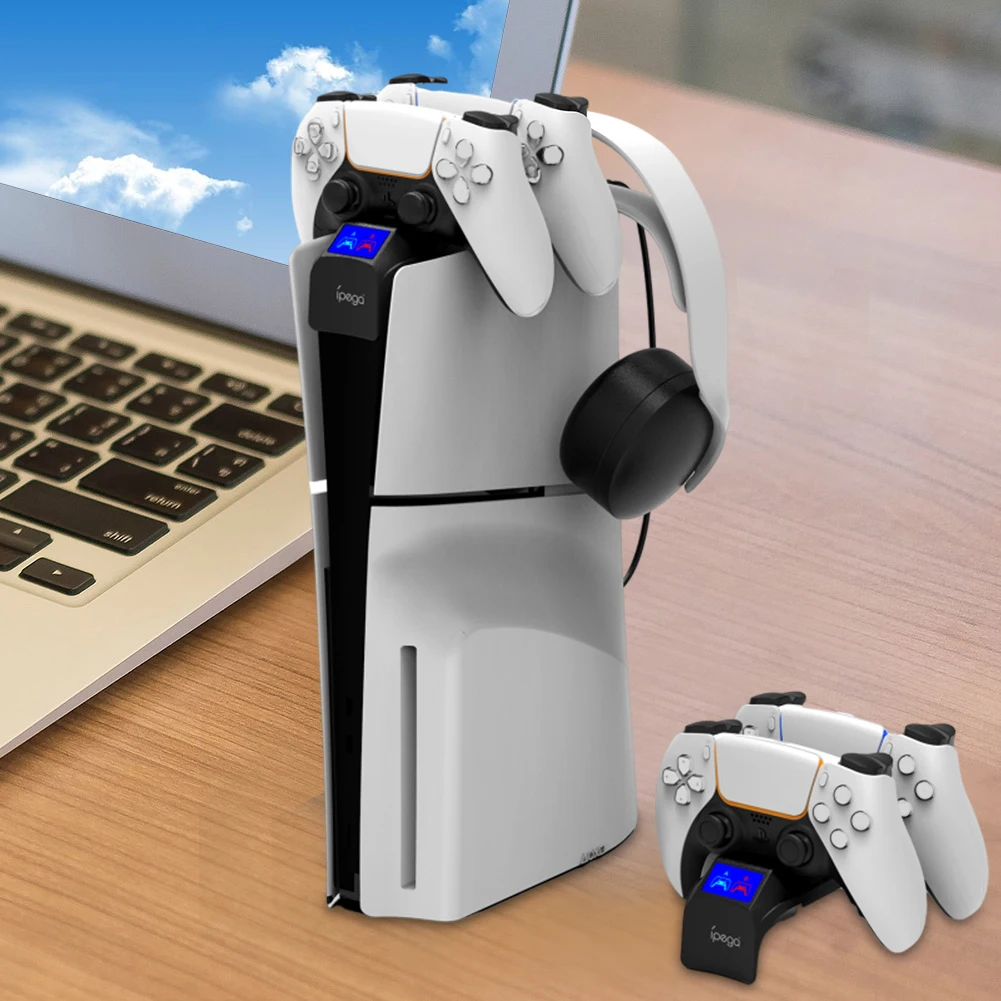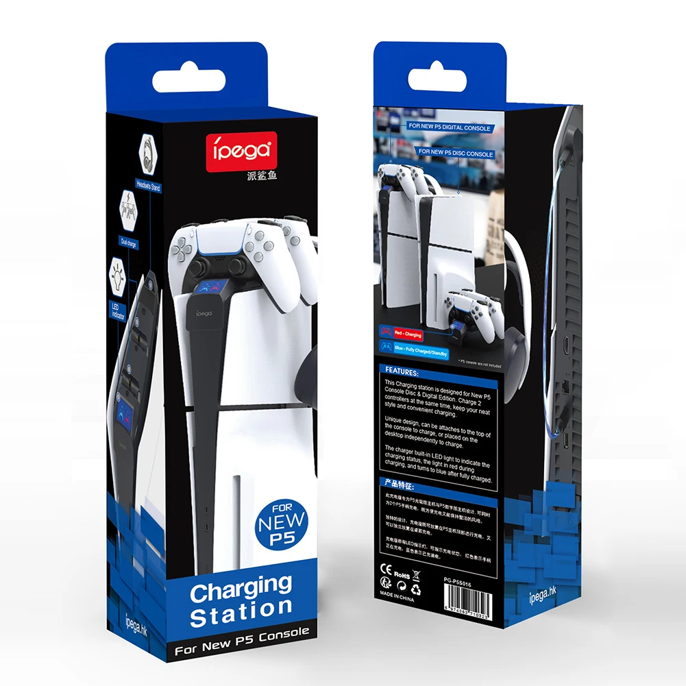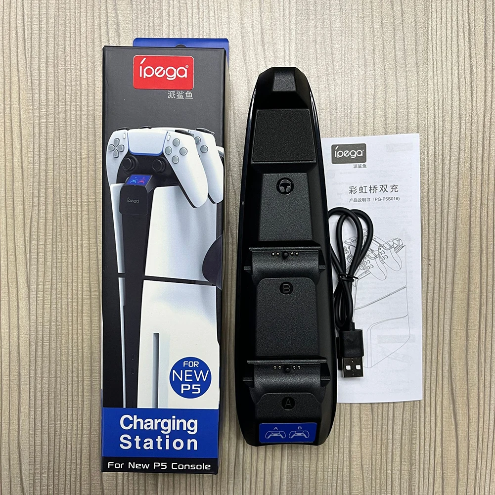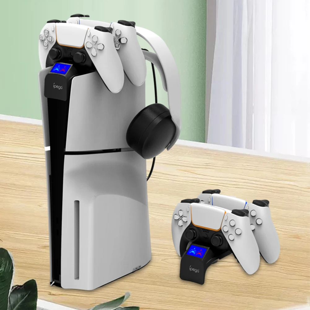 PS5 슬림 듀얼 컨트롤러 충전 도크 충전 스테이션 LED 라이트 충전 도킹 스테이션 용 플레이 스테이션 5 슬림