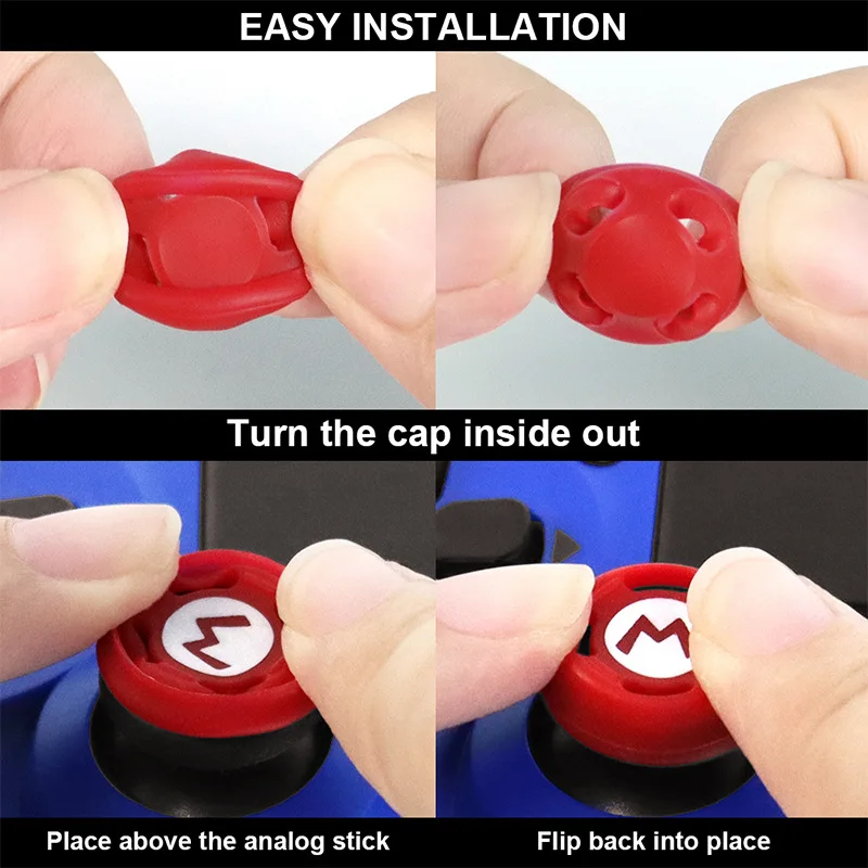 ★설치 방법: ① 조이스틱 캡을 뒤집습니다. ② 조이스틱을 정렬하십시오. ③ 모자를 떨어 뜨려 라. 참고: 재생할 때 캡이 조이스틱을 완전히 감싸서 튀어 나오지 않는지 확인하십시오.