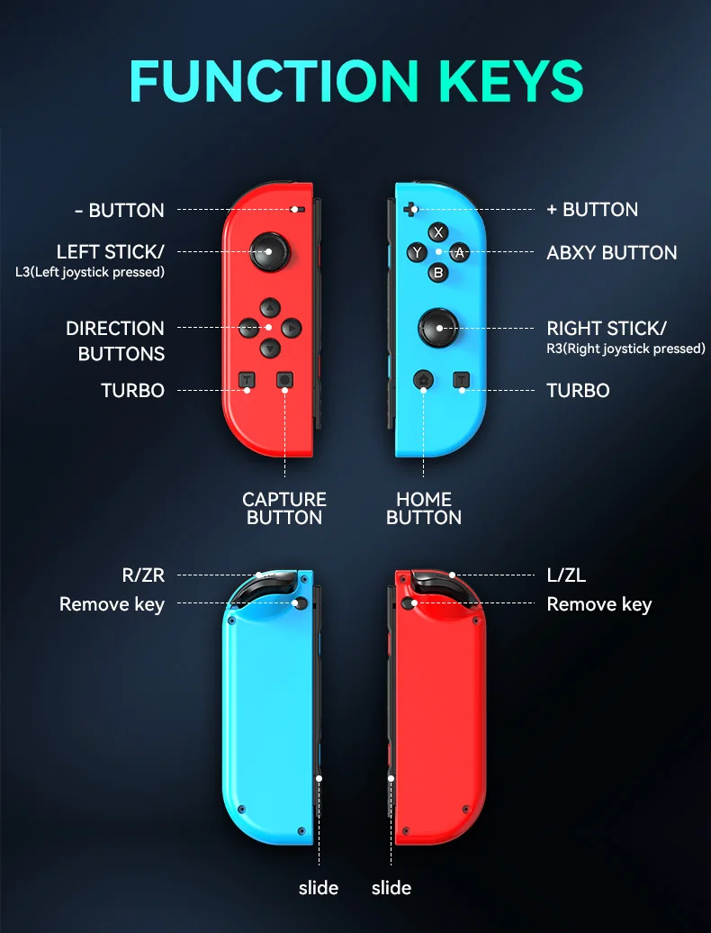 ?멋진 LED 조명: 게임과 동기화 된 숨막히는 조명 쇼를 만드는 LED 조명 주변이있는 스위치 조이콘 컨트롤러로 시각적으로 멋진 게임 경험에 빠져보세요. 번거롭고 즐거운 게임 세션을위한 Switch/Lite/OLED와의 완벽한 호환성.