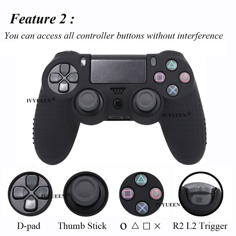 듀얼 쇼크 4 용 IVYUEEN 미끄럼 방지 소프트 실리콘 케이스 PS4 용 8 그립 슬림 프로 컨트롤러 보호 스킨
